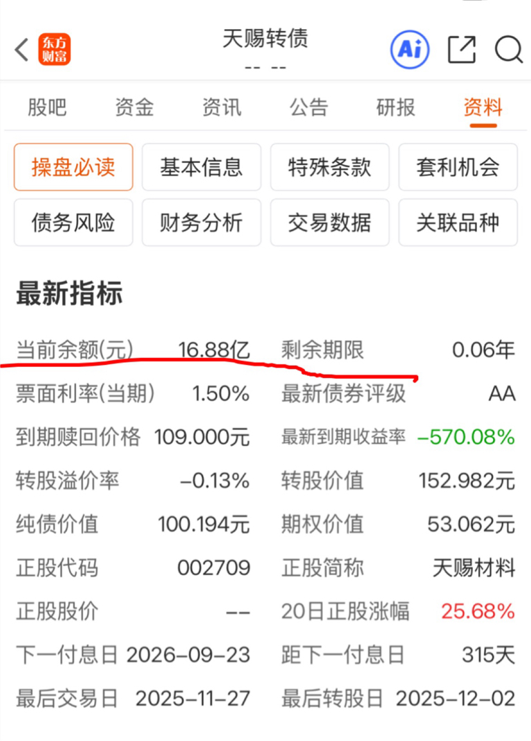 $天赐材料(SZ002709)$ 这个影响不大,强赎转股。大多数人也不一定卖。