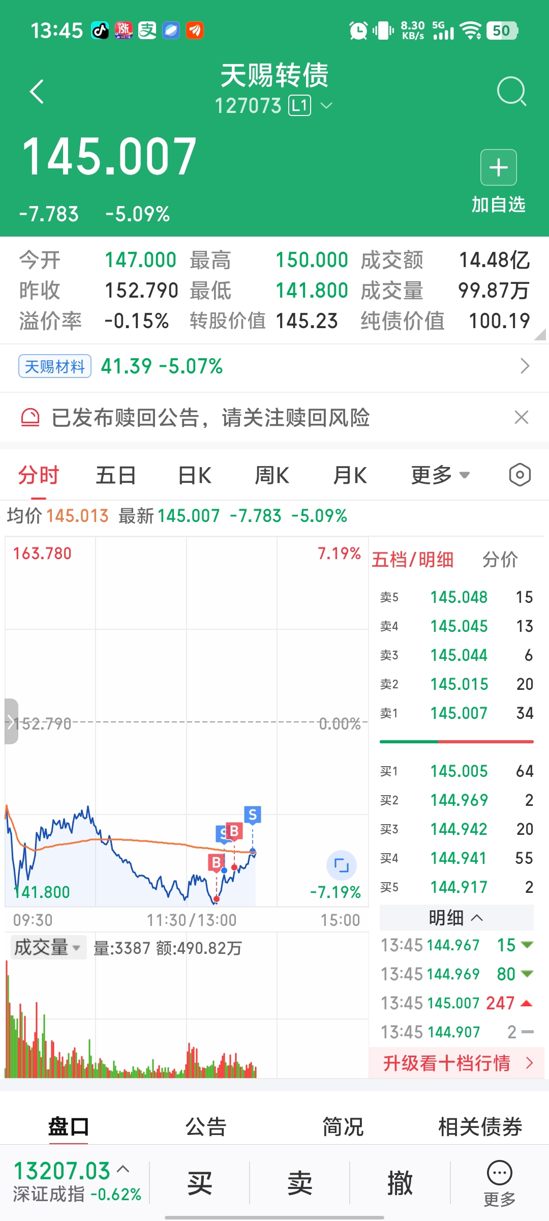 $天赐材料(SZ002709)$ 为了支持大家,我买可转债。。