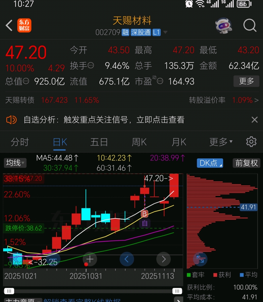 $天赐材料(SZ002709)$ 富贵险中求.走了