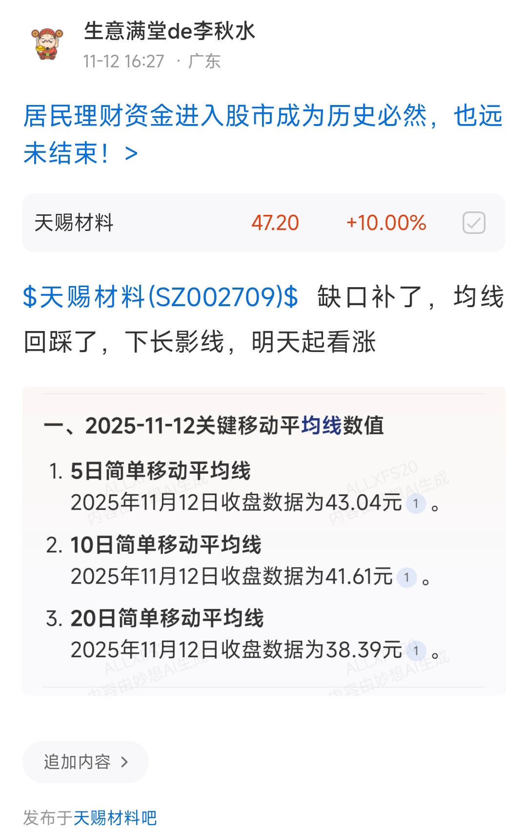 郑重声明:用户在财富号/股吧/博客等社区发表的所有信息(包括但不限于文字、视频、音频、数据及图表)仅代表个人观点,与本网站立场无关,不对您构成任何投资建议,据此操作风险自担。请勿相信代客理财、免费荐股和炒股培训等宣传内容,远离非法证券活动。请勿添加发言用户的手机号码、公众号、微博、微信及QQ等信息,谨防上当受骗!
