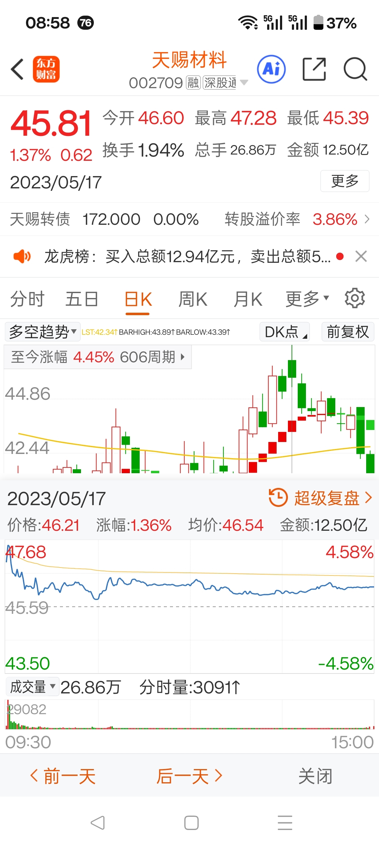 $天赐材料(SZ002709)$ 最近一个高点再2023.5.17,27.28选,今天冲过去没问题。解放山顶的朋友。