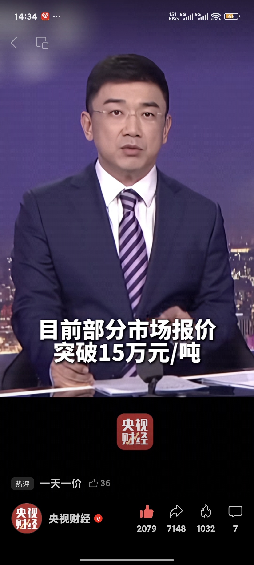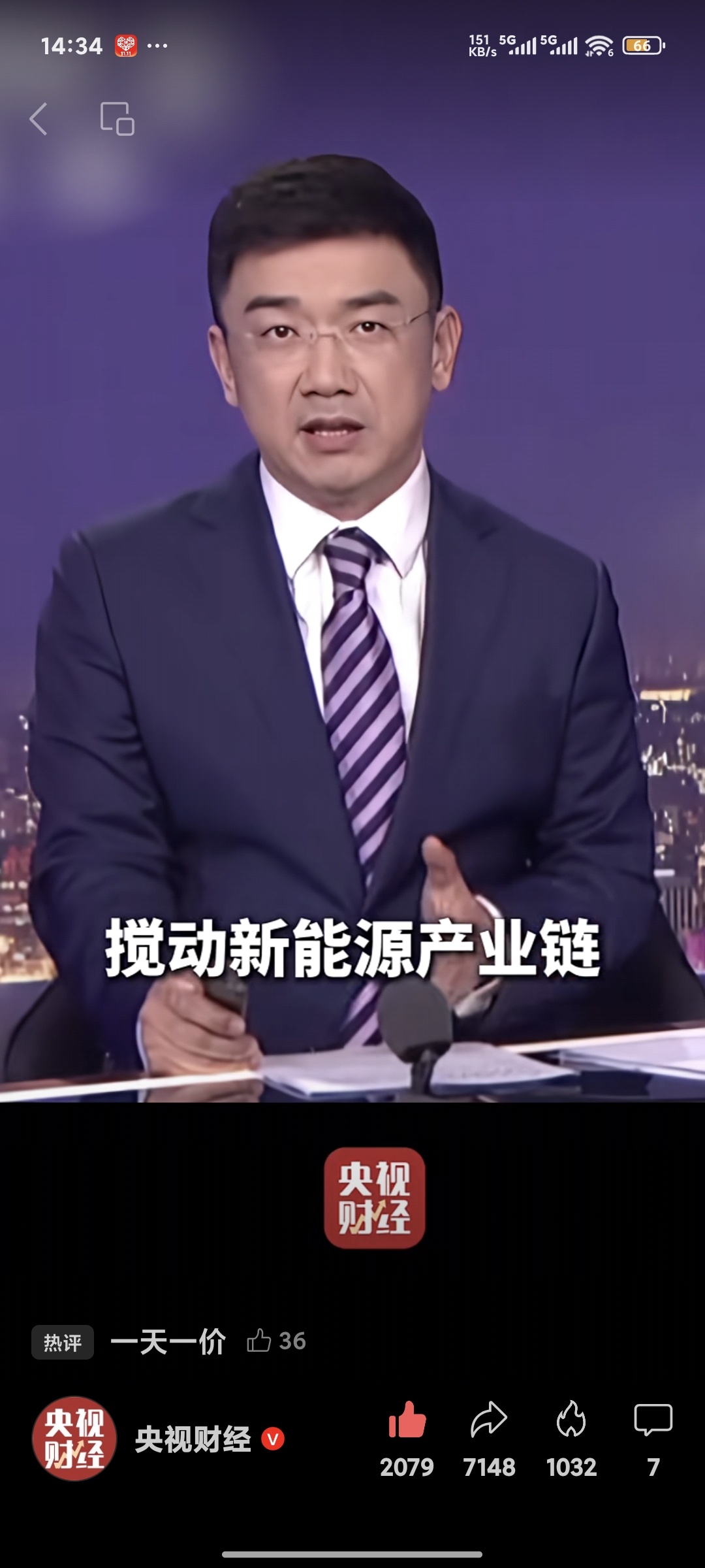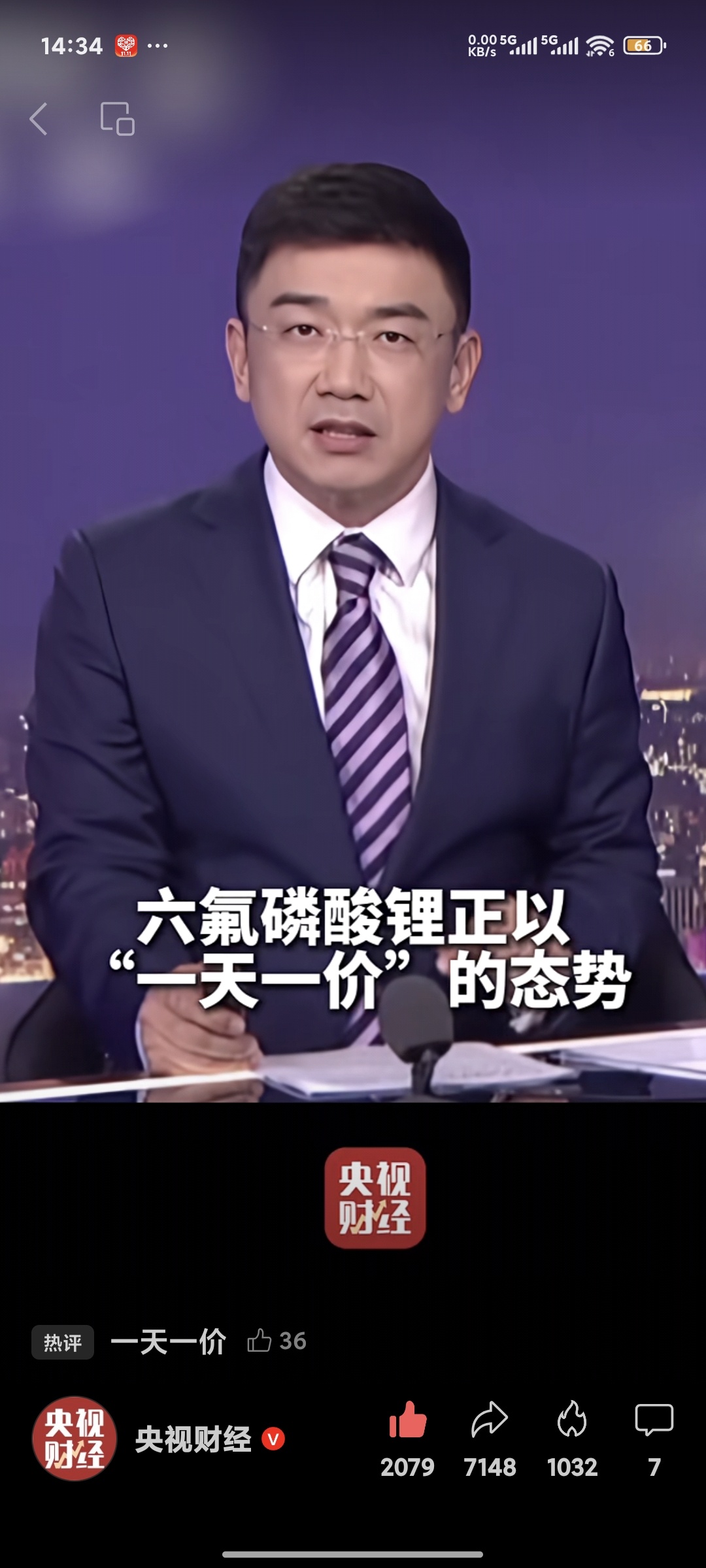 $天赐材料(SZ002709)$ 昨天星期六上央视财经。