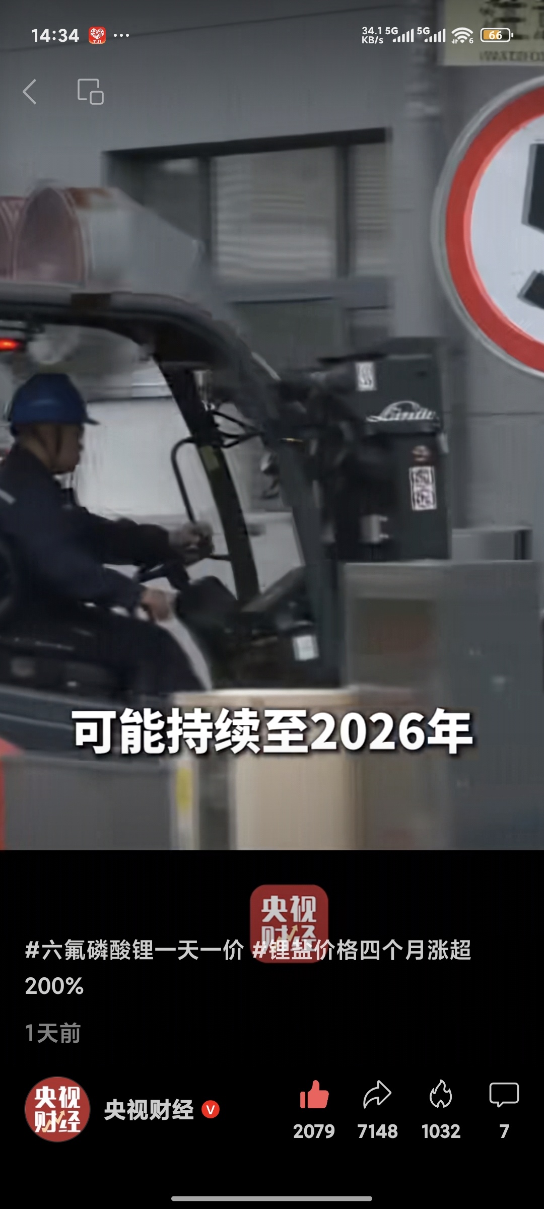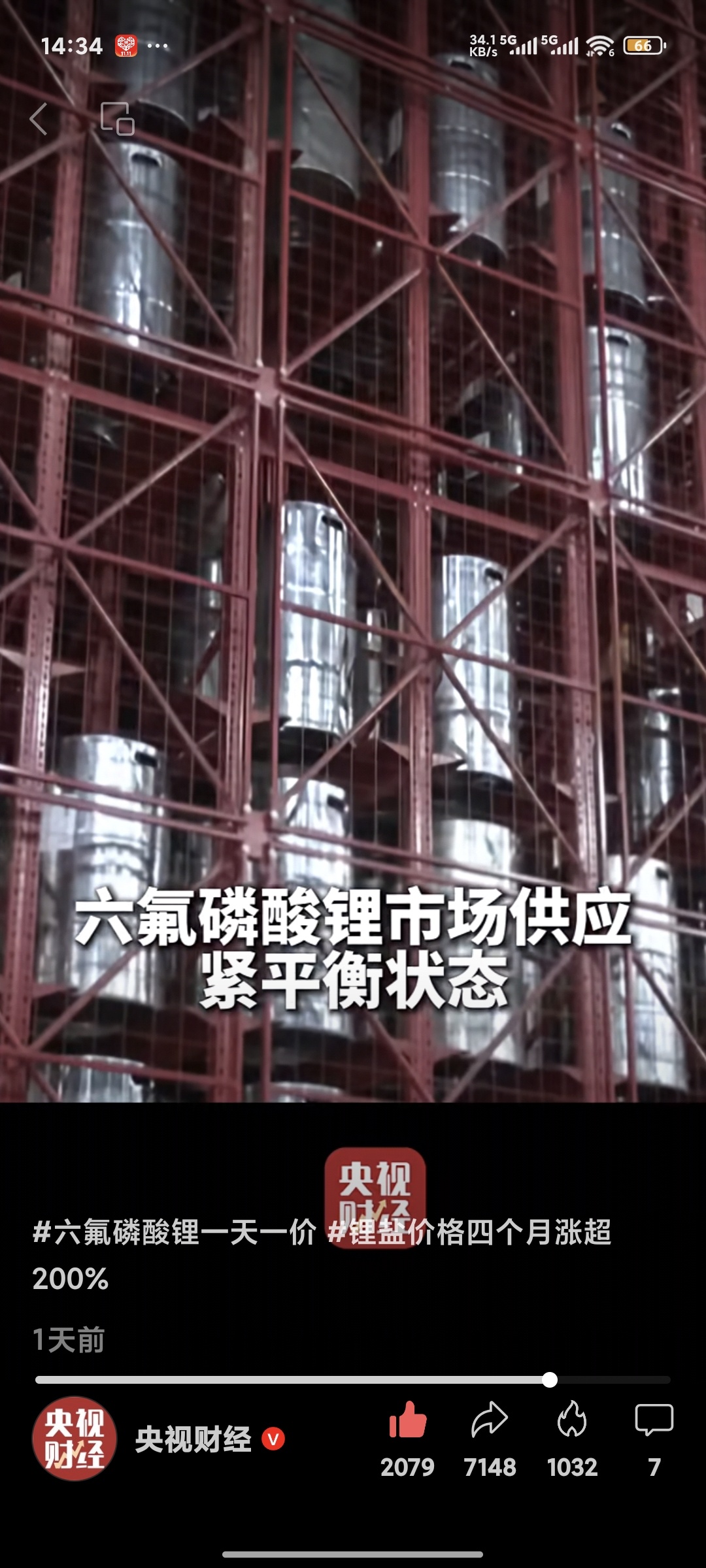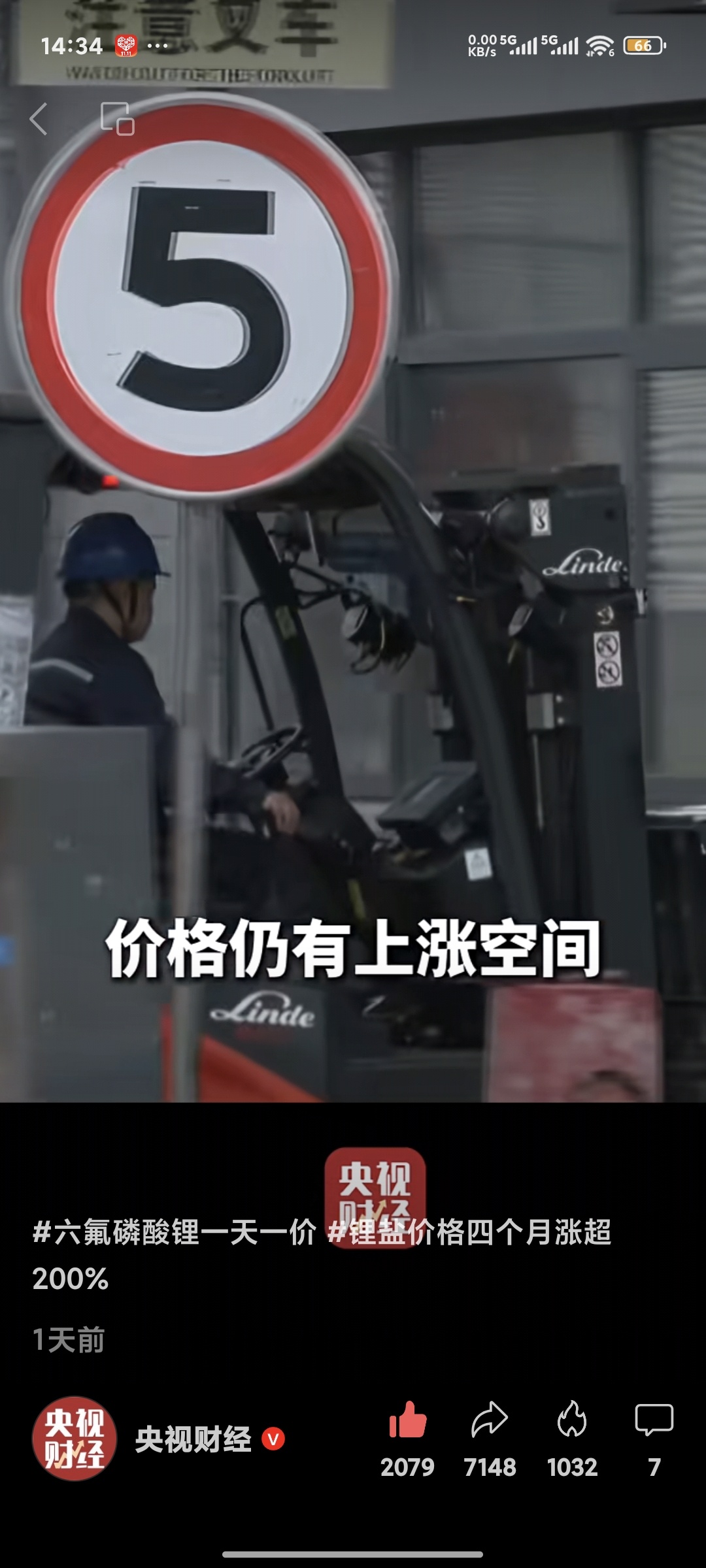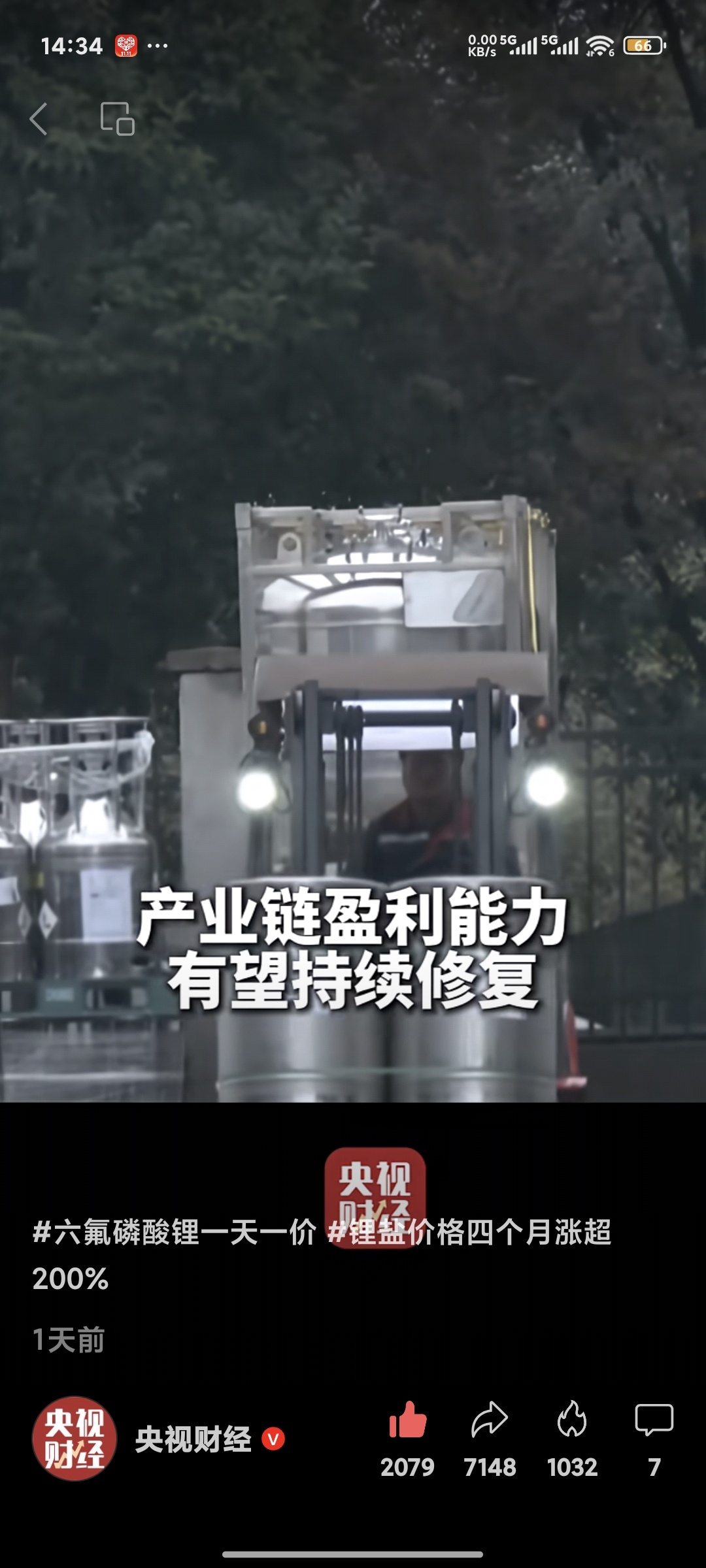 $天赐材料(SZ002709)$ 昨天星期六上央视财经。