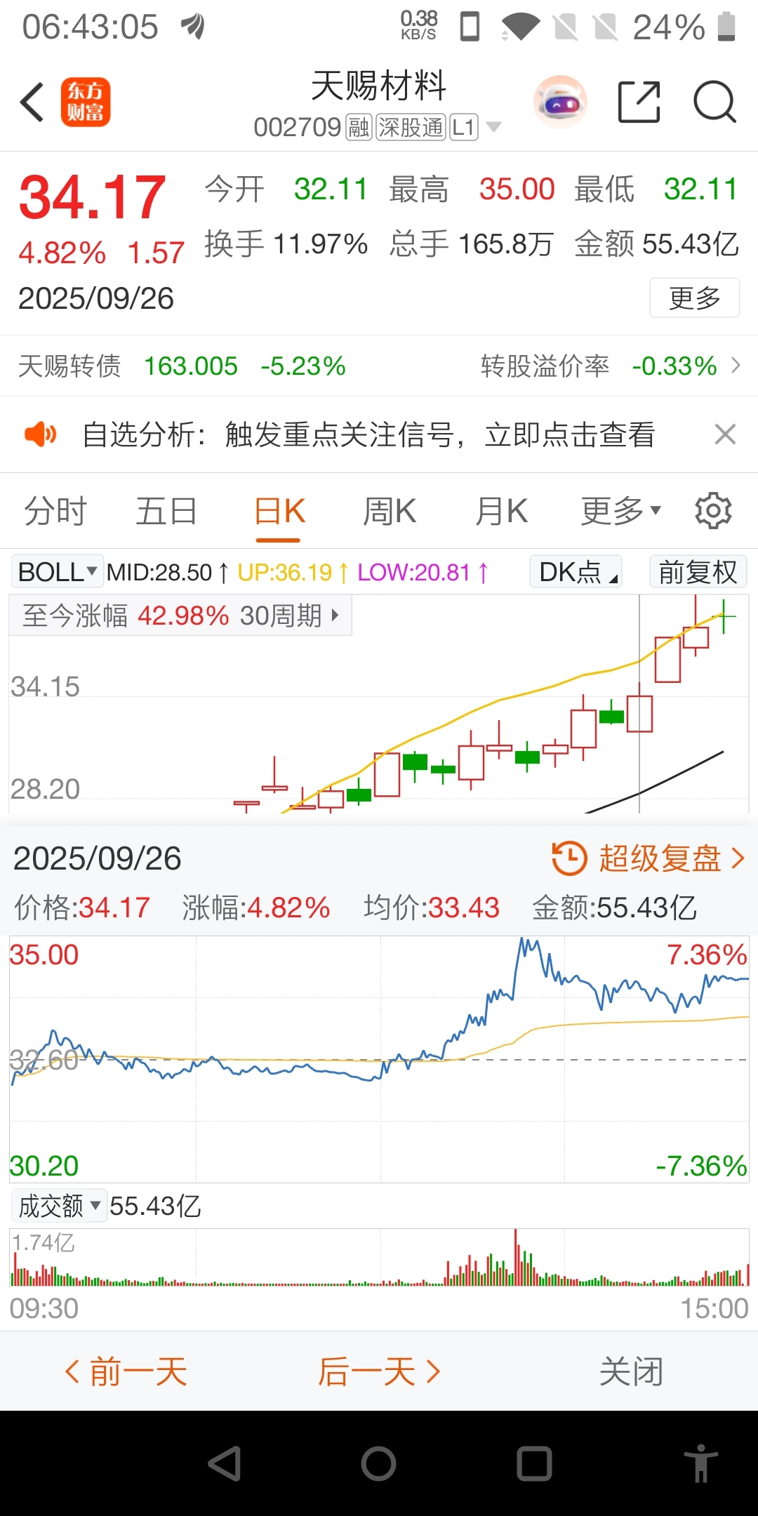 回顾一下历史之2,总没错吧。2025.9.26,在前一天下跌的惯性作用下,天赐材