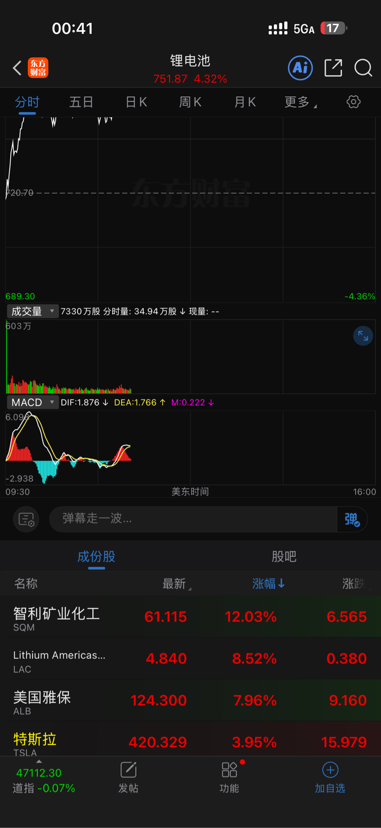 $天赐材料(SZ002709)$ 美股锂电池暴涨,明天天赐让我先进