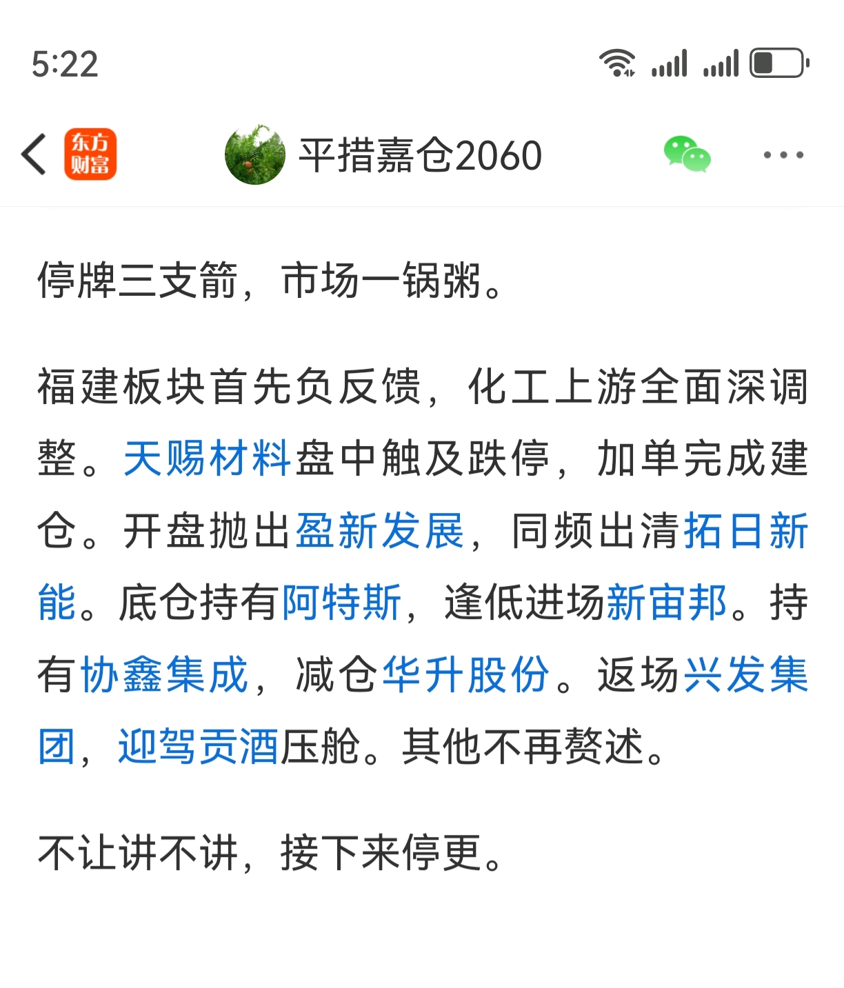 囿于时间精力,暂时予以停更。福建小屋三支箭,带崩化工九十亿。集体杀跌宣泄,明日部