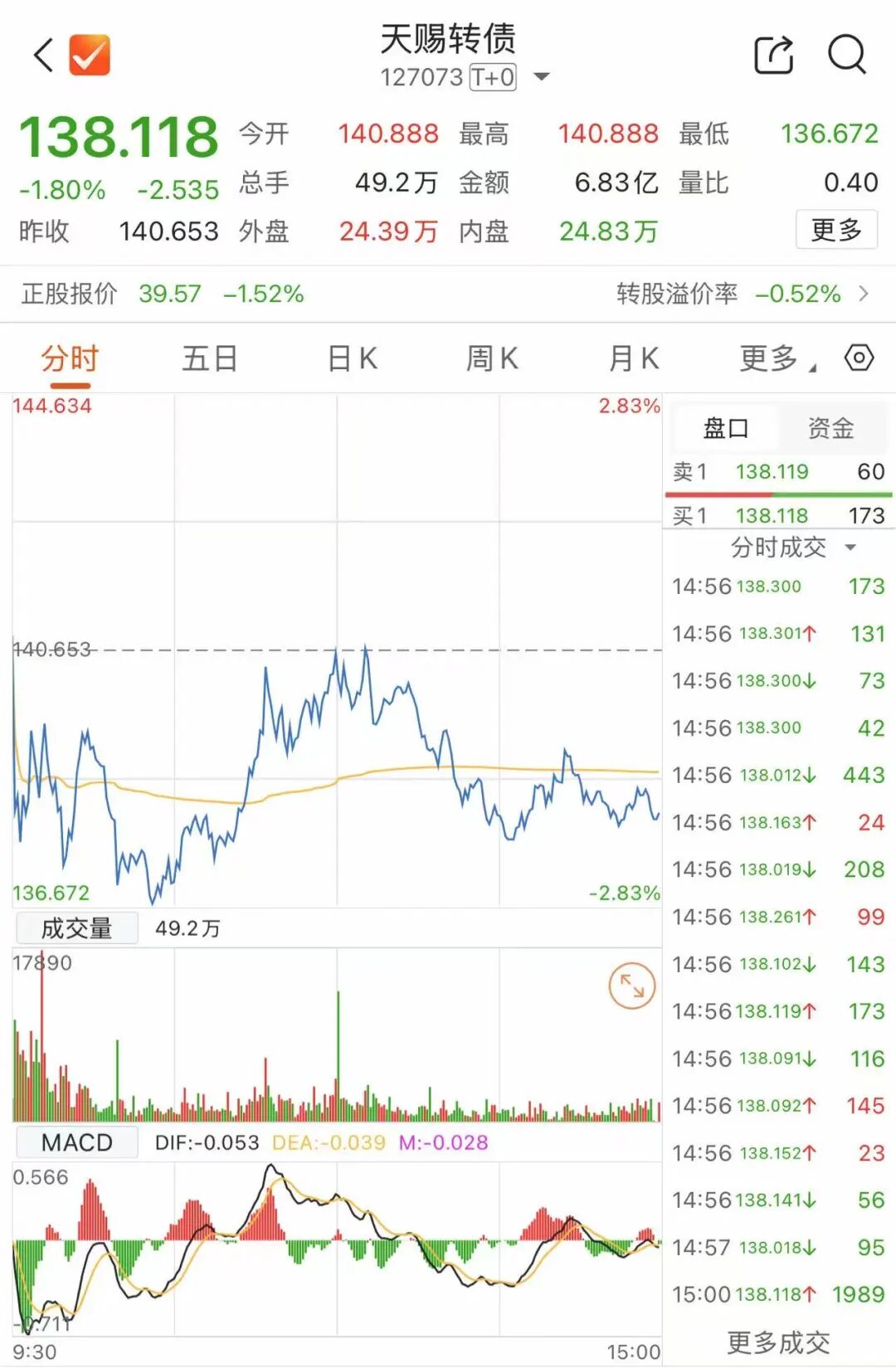 11月27日,是天赐转债、旗滨转债的最后交易日。天赐转债、旗滨转债11月26日收盘价分别为138.118元/张和105.945元/张,如果投资者不及时交易或转股而被强制赎回,可能分别亏损超27%和4%。此前,晨丰转债部分持有者就因未及时操作导致亏损34%以上。