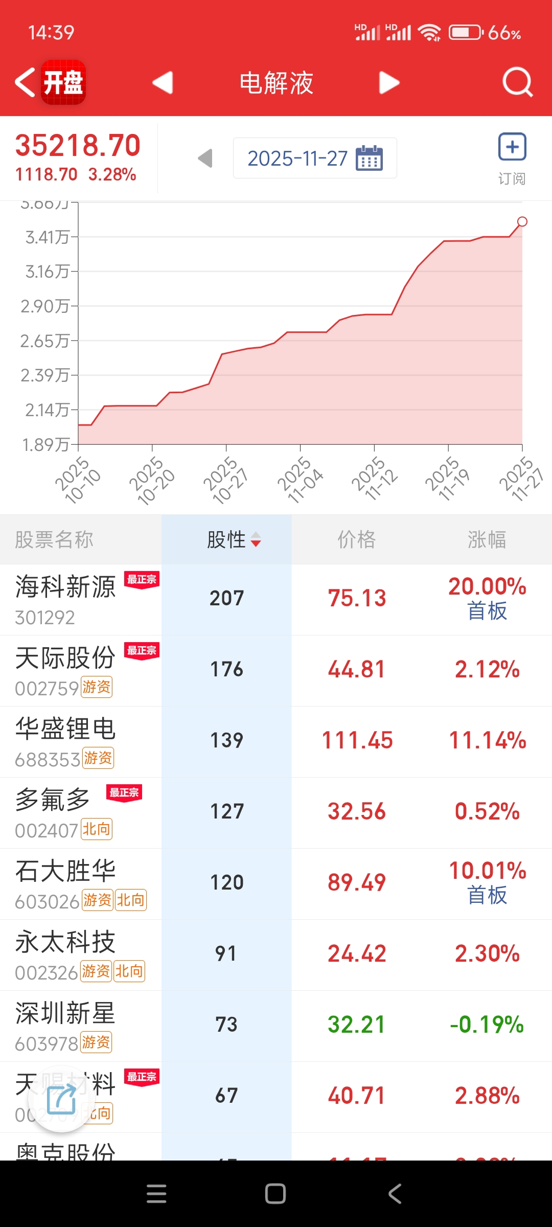 $天赐材料(SZ002709)$ 电解液价格平盘几天后今天创新高,吨价为35218.7元,涨幅3.28%。