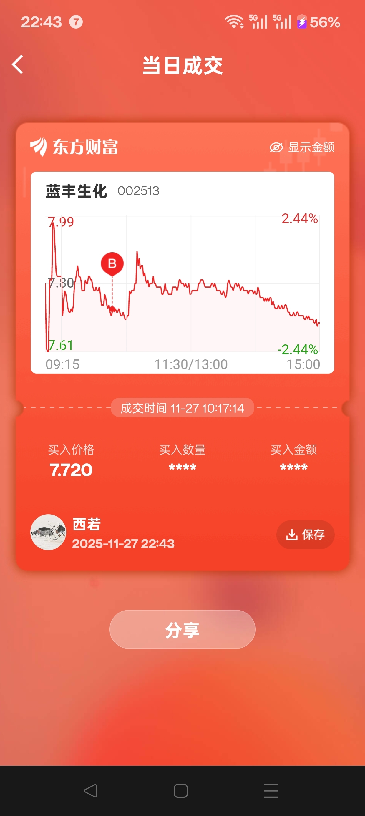 $天赐材料(SZ002709)$ 想问大家一个问题,盘中做t有价值吗?在什么情况下才可以做t?昨天买的蓝丰生化,不成功,买入7.72收盘7.69,尽管最高拉到7.91,那又有什么意义呢?盘中做t意义何在?早盘买入,盘中拉高卖出手里的筹码,尾市跌破早盘买入价。那么,早盘买的是不是亏了?所以,我的教训是,不要盘中交易。