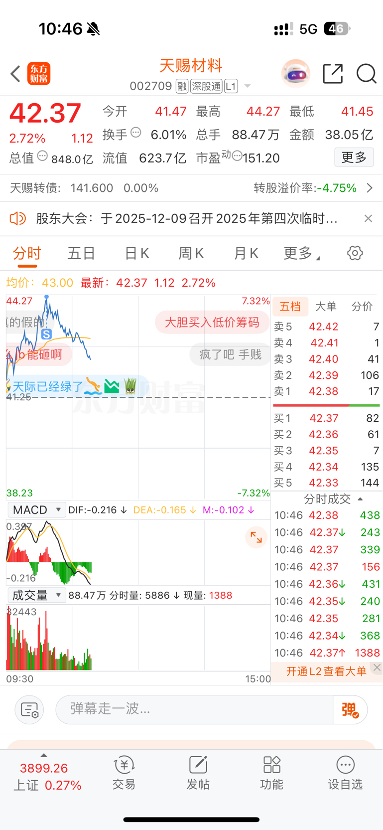 $天赐材料(SZ002709)$ 44.25刚好最高点