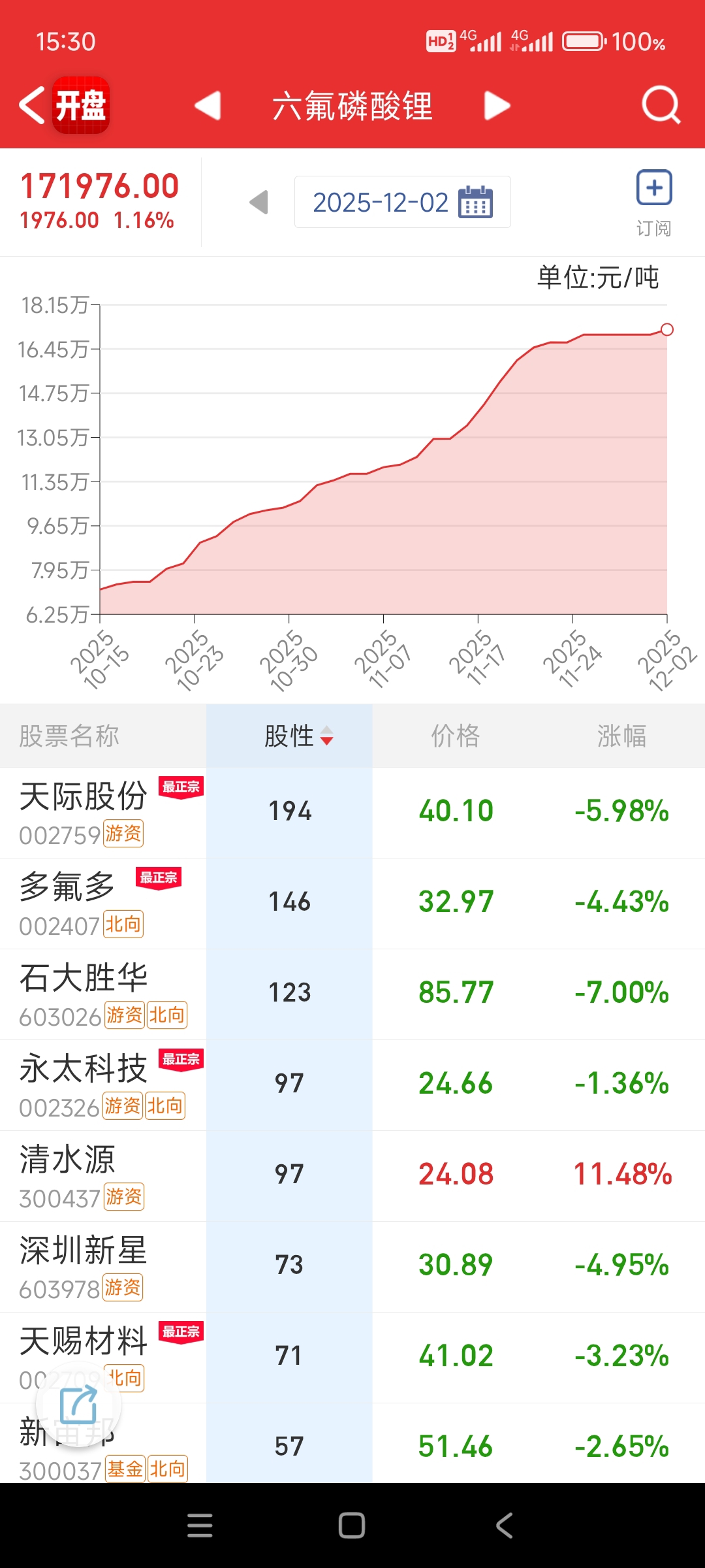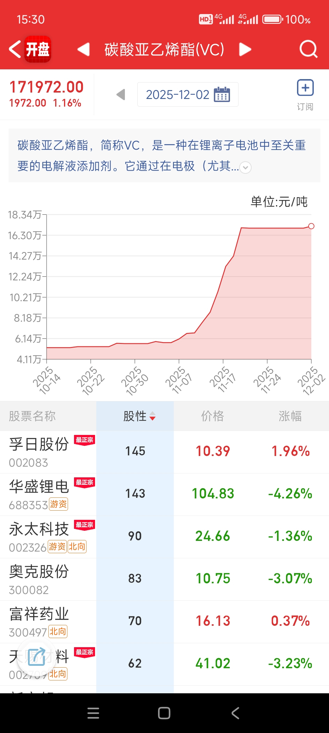 今天股价与理电材料价格背离,明天有望收复。六氟磷酸锂、碳酸亚乙烯酯(VC)和电解