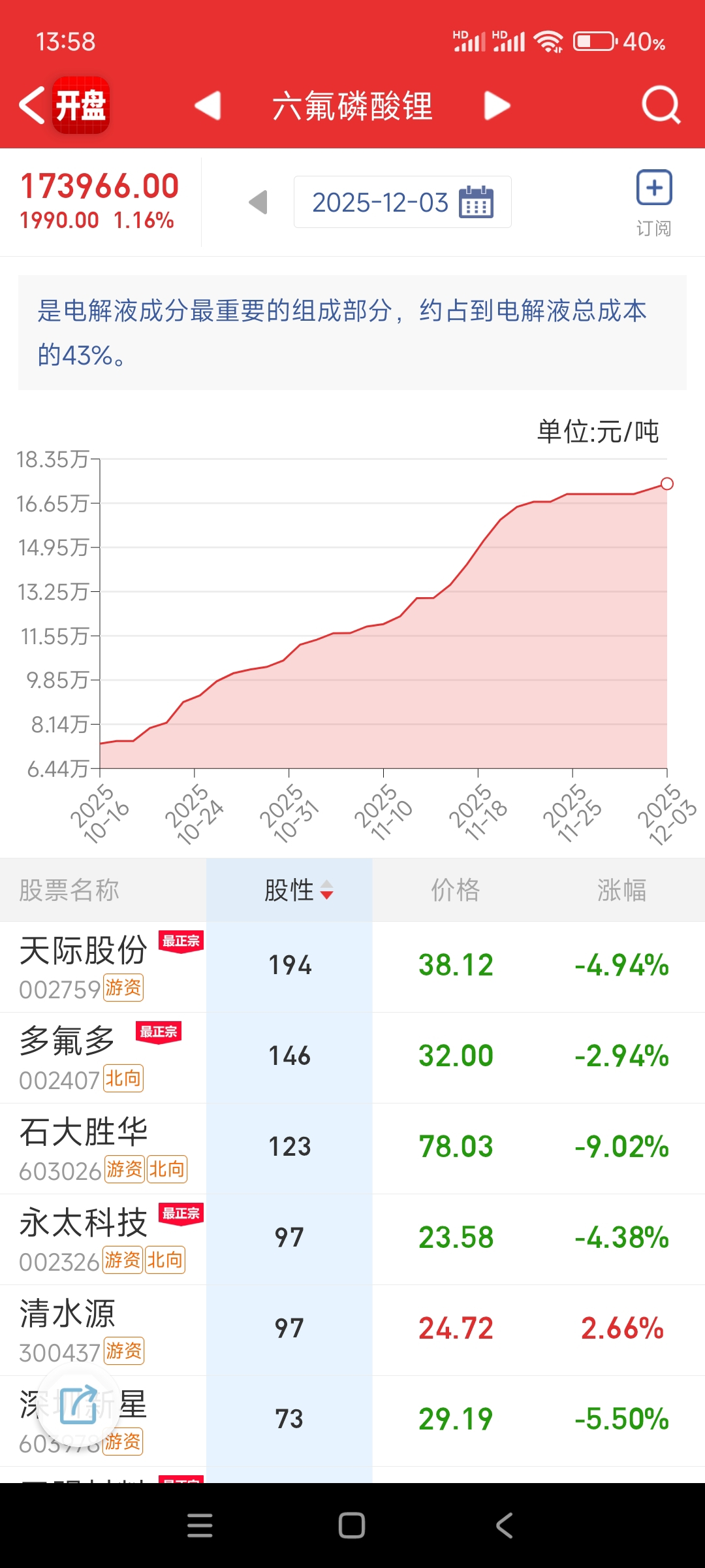 如果本月六氟磷酸锂平均涨幅为0.009,则本月价格将超过每吨20万元。电解液平均