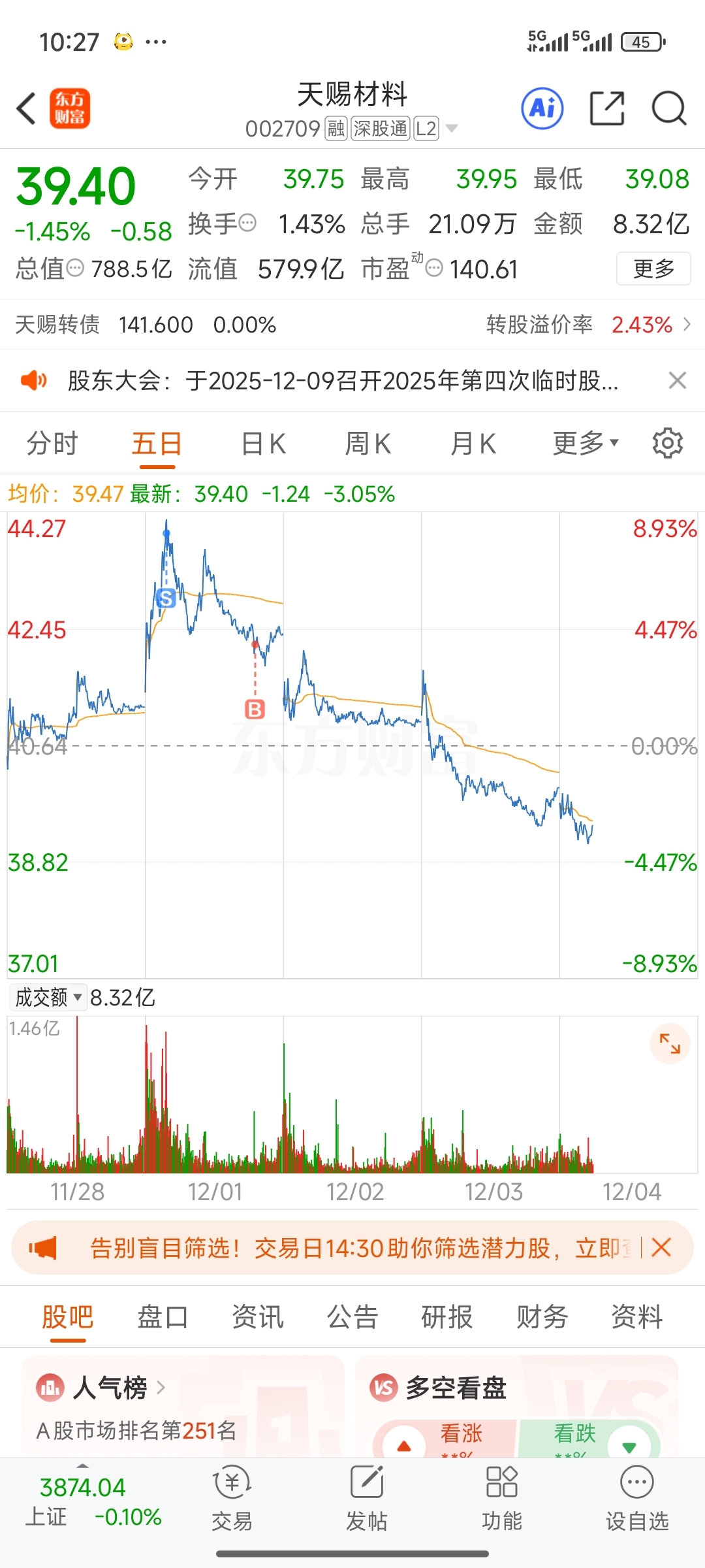 $天赐材料(SZ002709)$ 卖的多 又买错 难玩