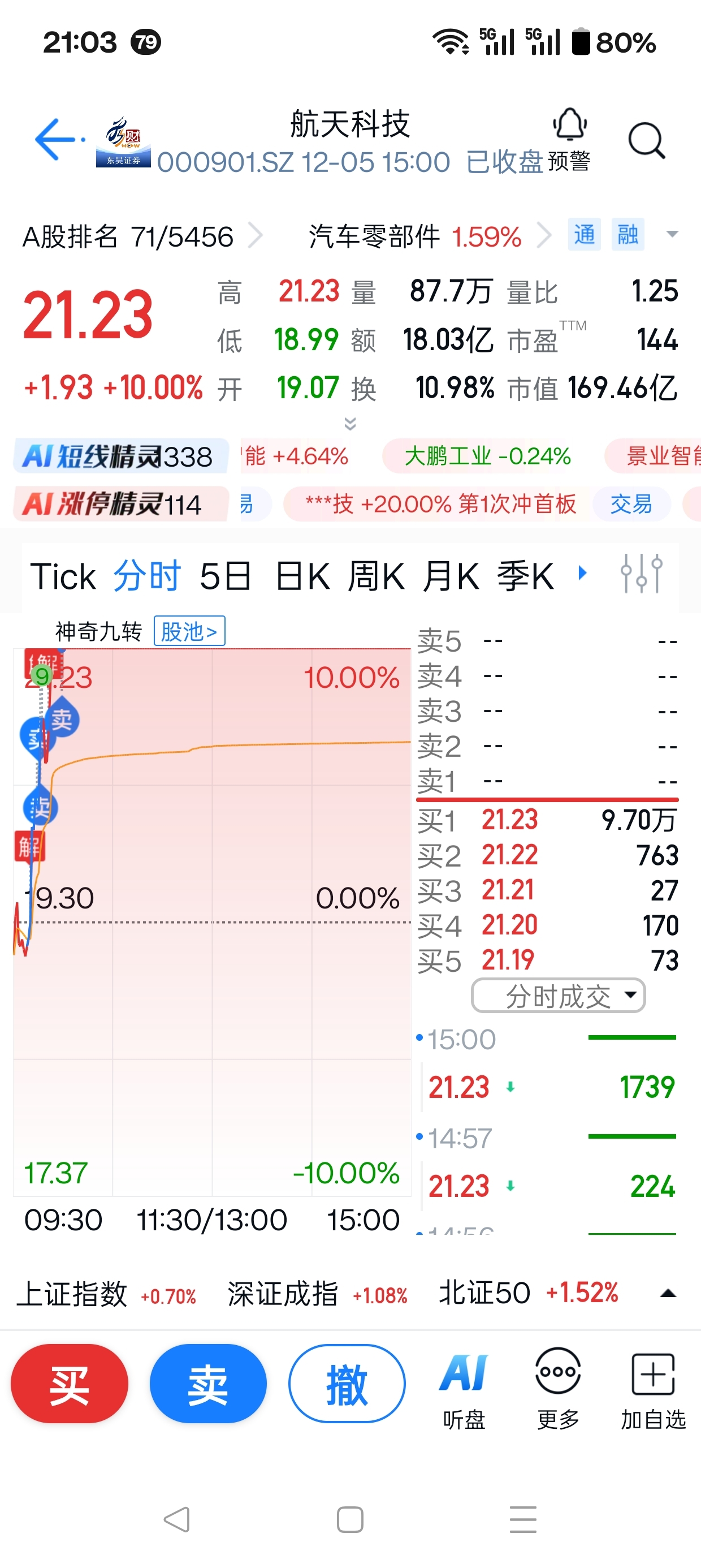 今天我面临一个艰难的选择,那就是应该剁左手还是剁右手。上午卖出航天科技后,涨停了