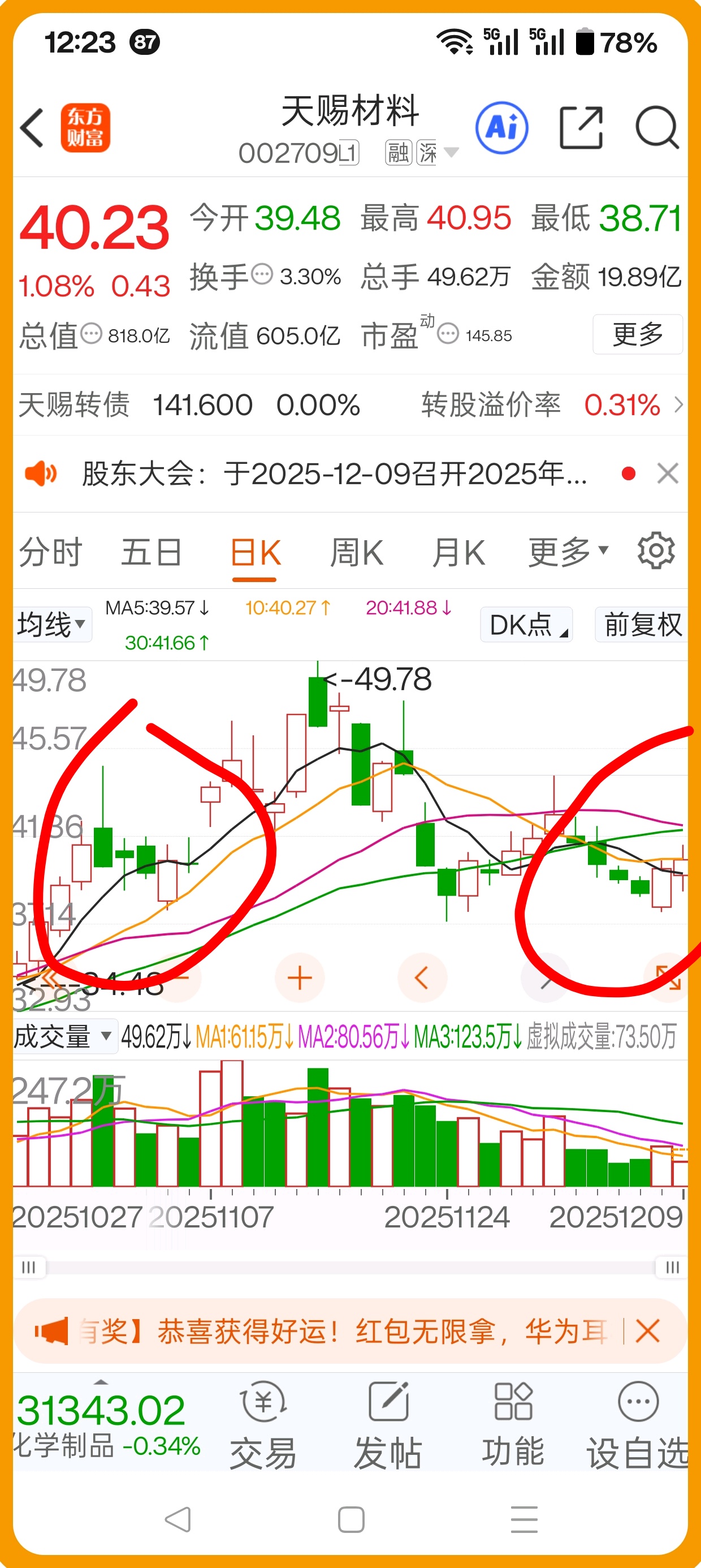 $天赐材料(SZ002709)$ 对称的啊,大阳线后十字星。次日跳空高开高走。上次就是这么走的。