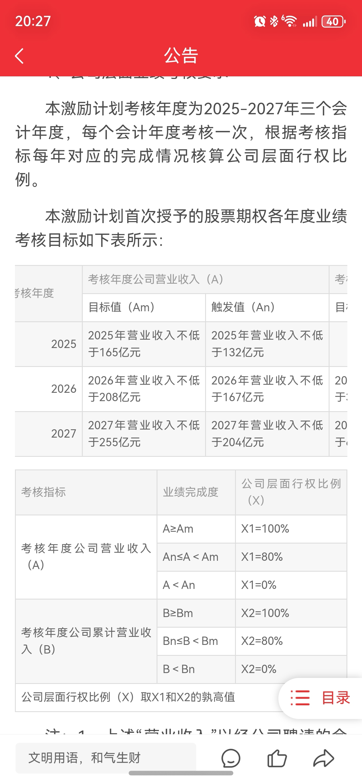 已经开始行权,说明营业收入已经达到触发值132亿。还有一个月时间增加营业收入,加