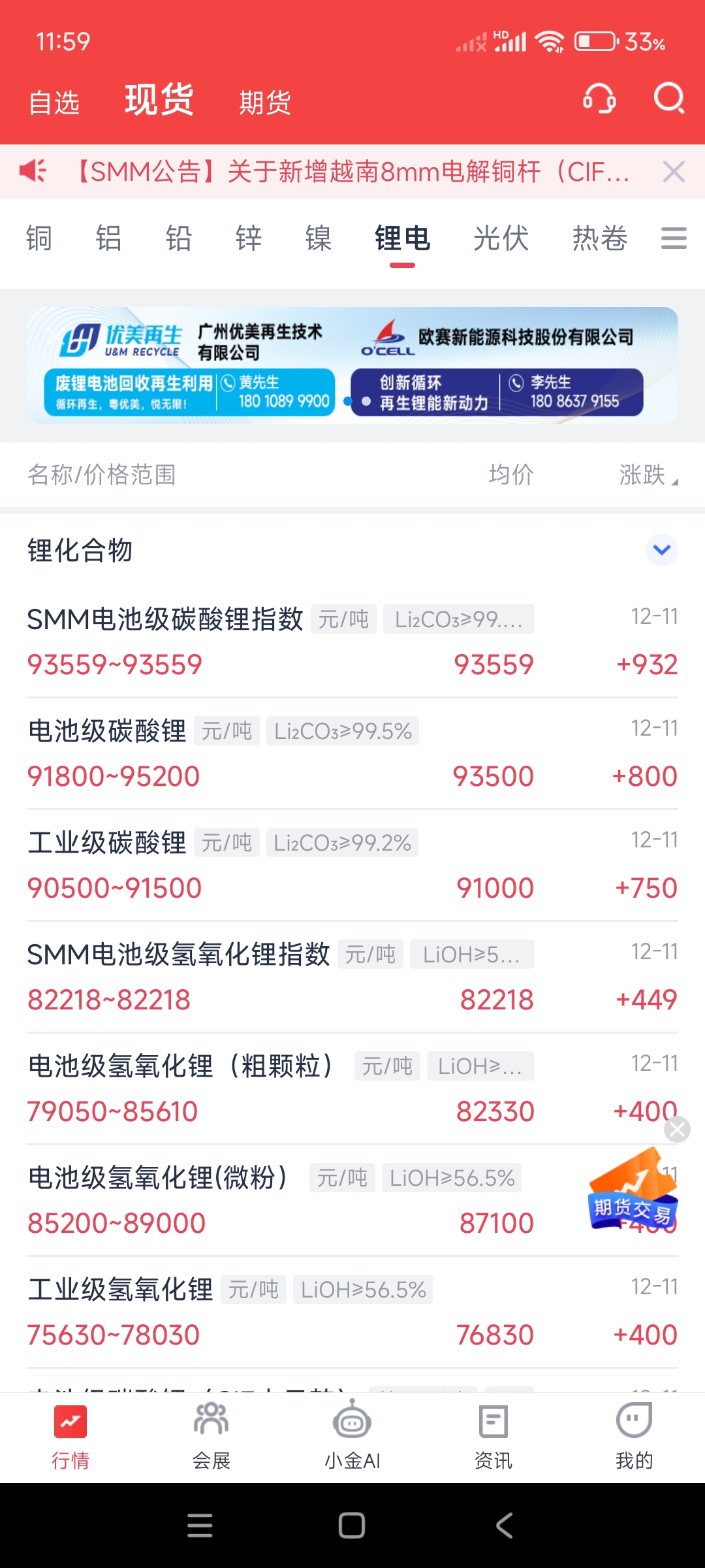 碳酸锂在涨价,六氟磷酸锂和碳酸亚乙烯酯(VC)无报价,电解液也无报价。无报价原因