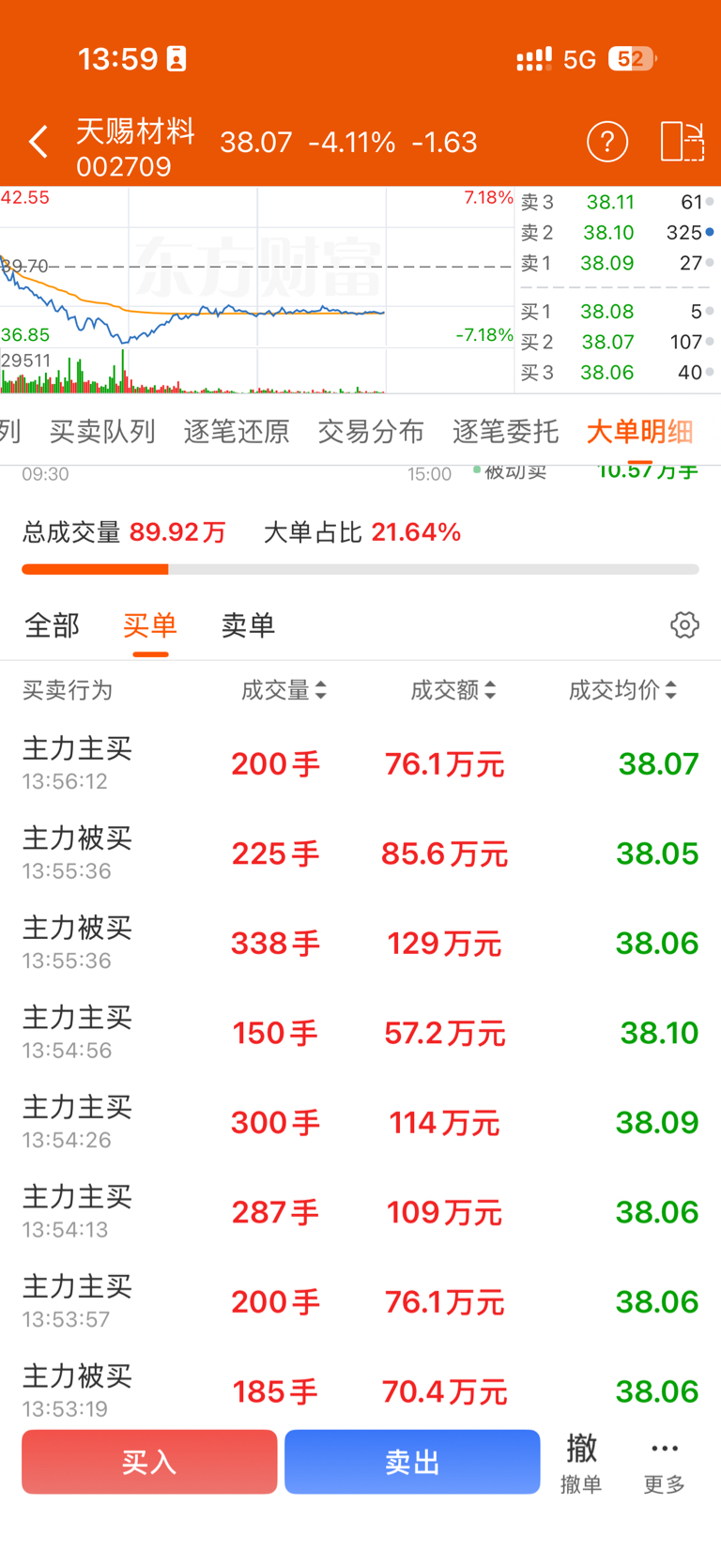 $天赐材料(SZ002709)$ 主力低价卖高价买