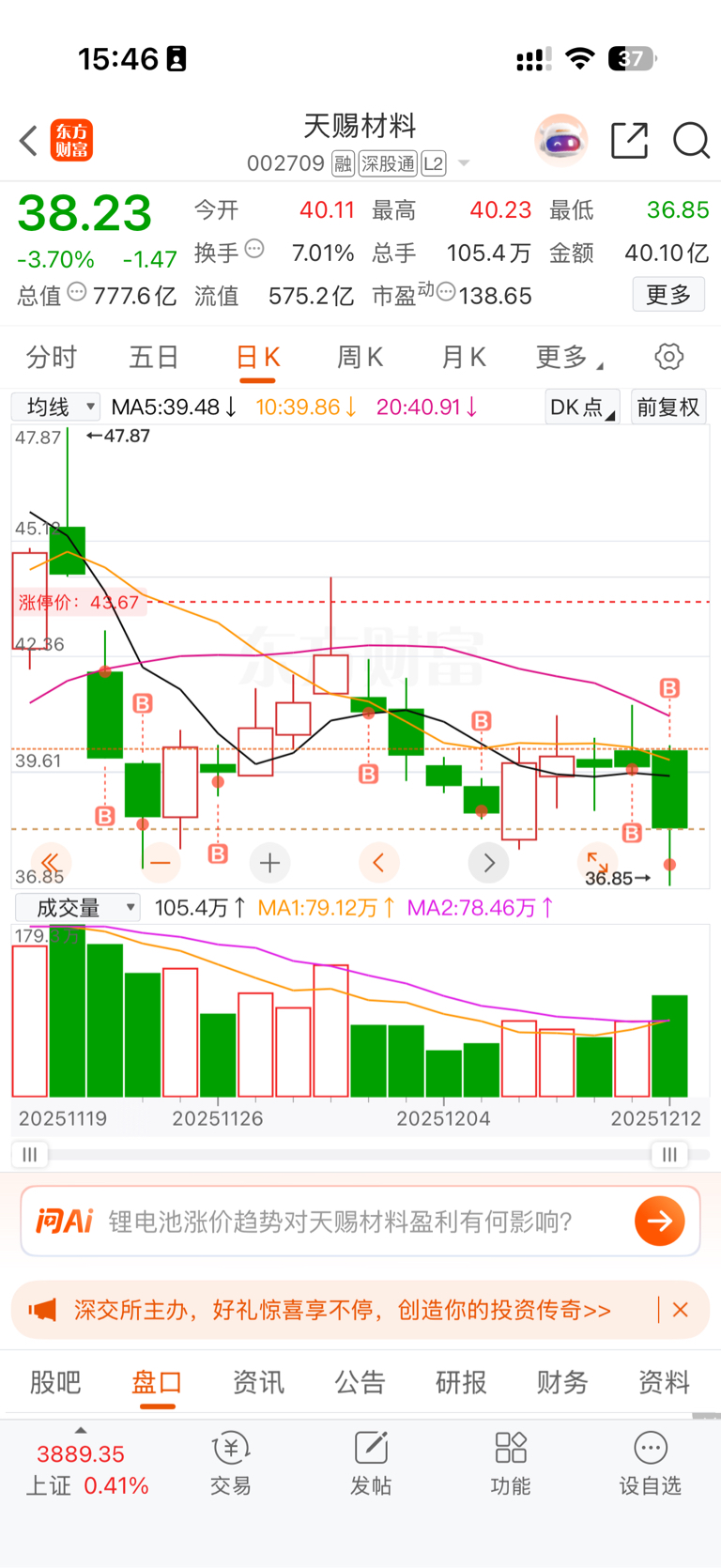 $天赐材料(SZ002709)$ 这是定海神针还是金针探底