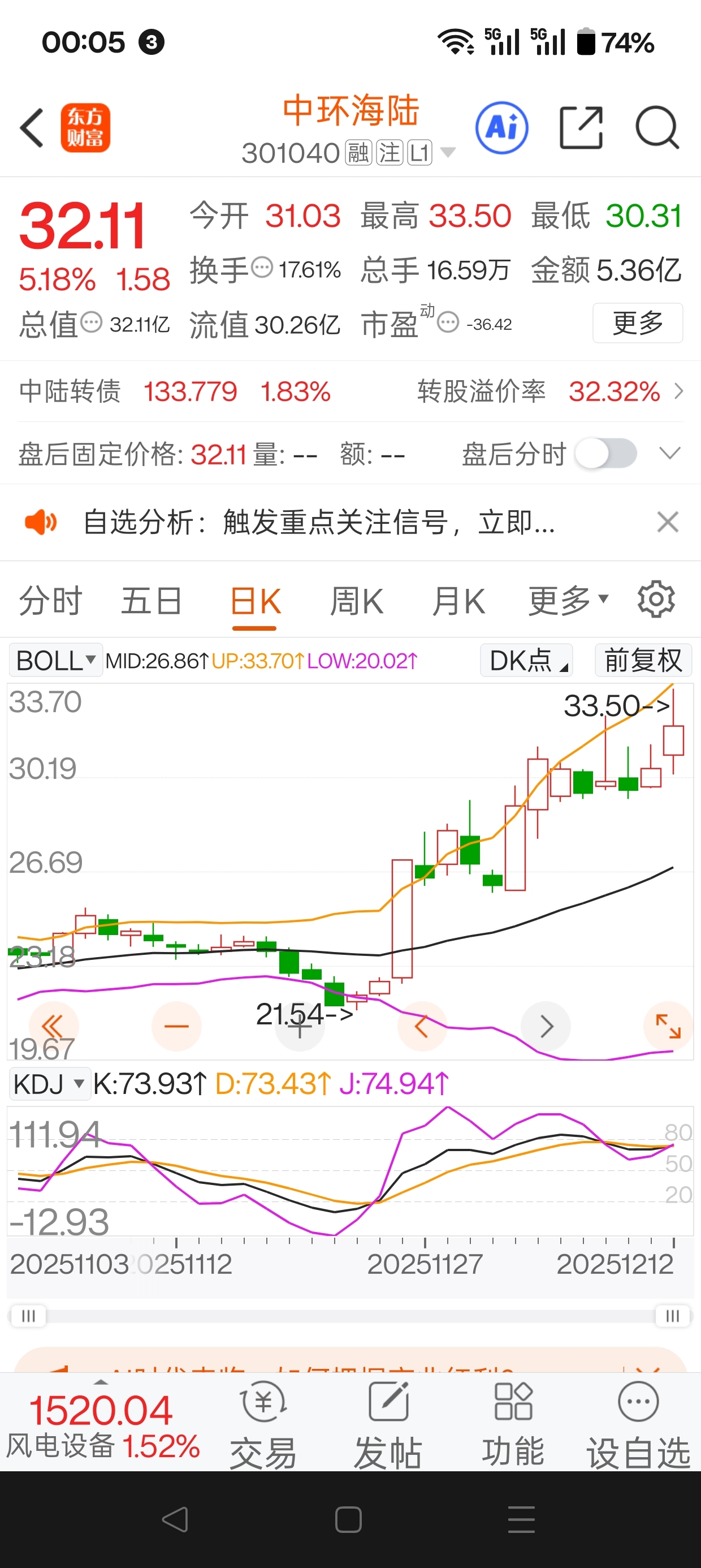 看选股换股操作。卖出天赐,换取中环海陆,上升趋势,昨天大盘大跌,中环海陆不跌反涨