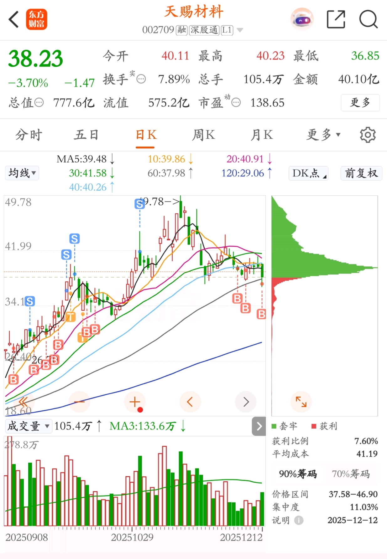 $天赐材料(SZ002709)$ 最后一个波段没吃到,大家在里面困多久了,前几天进来的,被套两个点了。