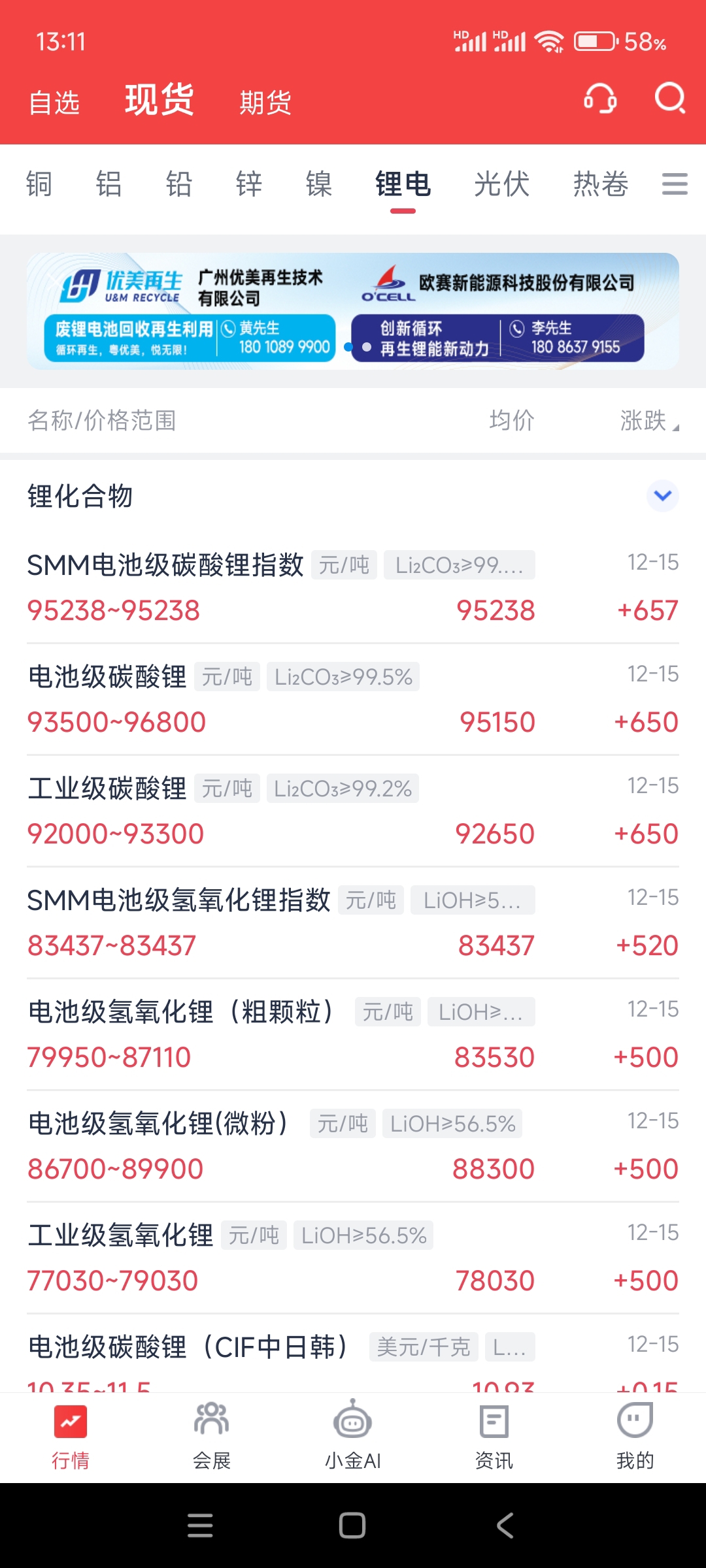 $天赐材料(SZ002709)$ 公司生产磷酸铁,现在磷酸铁锂涨价,磷酸铁也应该会涨价。虽然公司生产的碳酸锂是用来自给,但市场上碳酸锂涨价必会传导致下游产品电解液,因此电解液也应该继续涨价。最近好几天电解液无报价,应该是市面无电解液可零售。都是长协定单在销售。