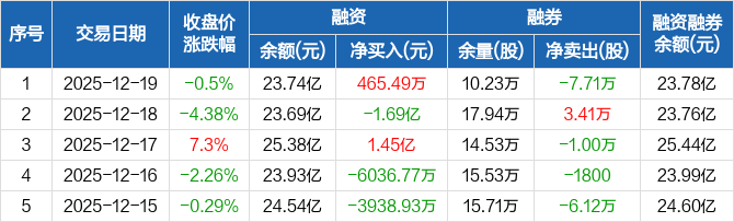 天赐材料:融资净买入465.49万元,融资余额23.74亿元(12-19)