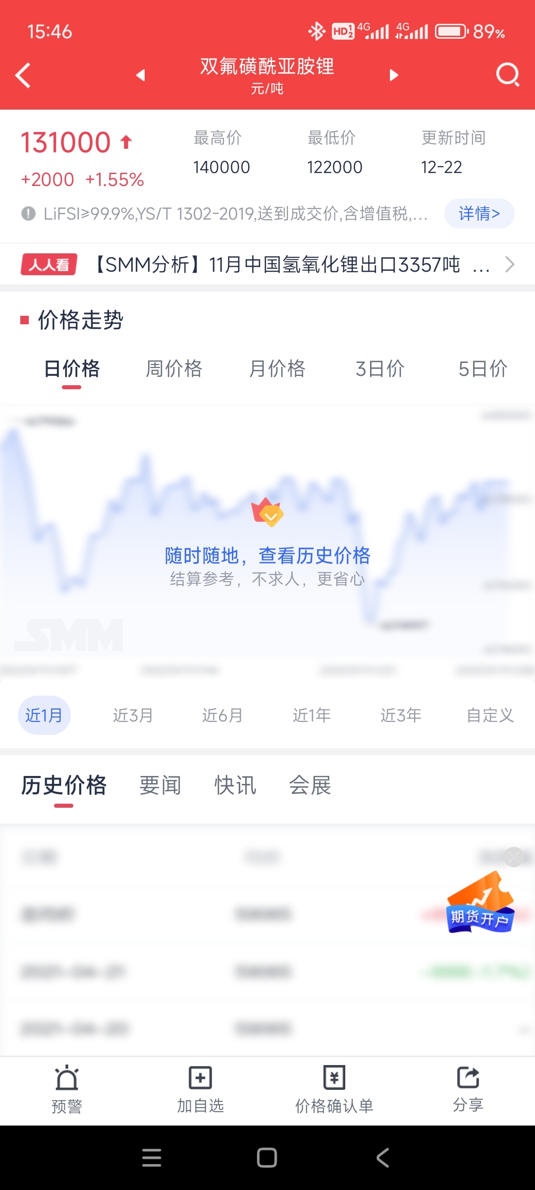 天赐材料LiFSI年产量3万吨。9月最高价9.3万元/吨,现13.1万元/吨,涨