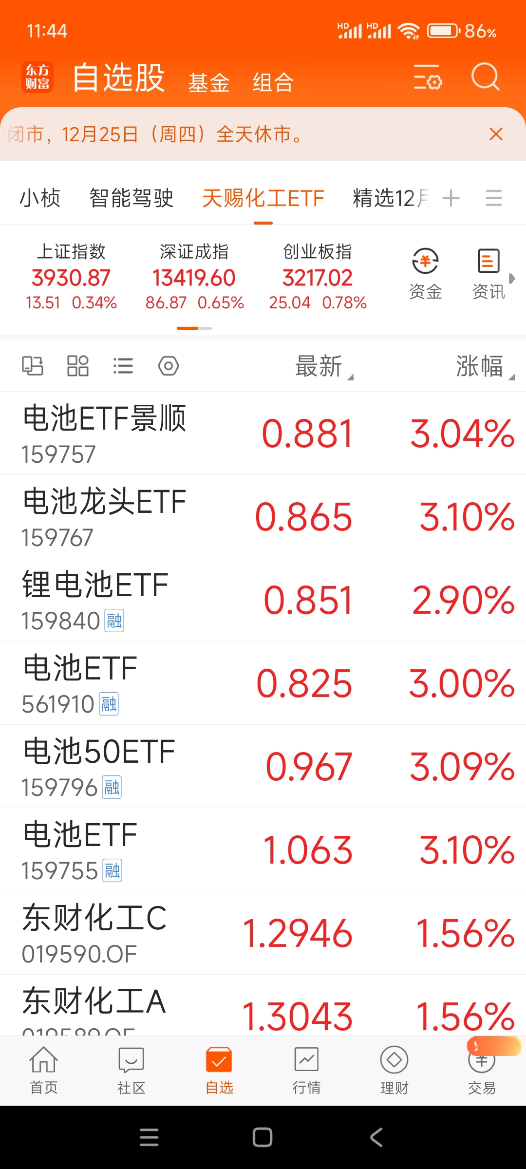 今天持有天赐材料的ETF和基金都上涨超过1%。