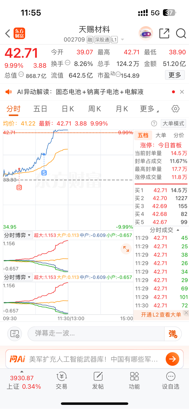 $天赐材料(SZ002709)$ 格局小了,就t了三个点,刚回本