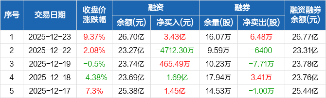 天赐材料:融资净买入3.43亿元,创近一年新高(12-23)
