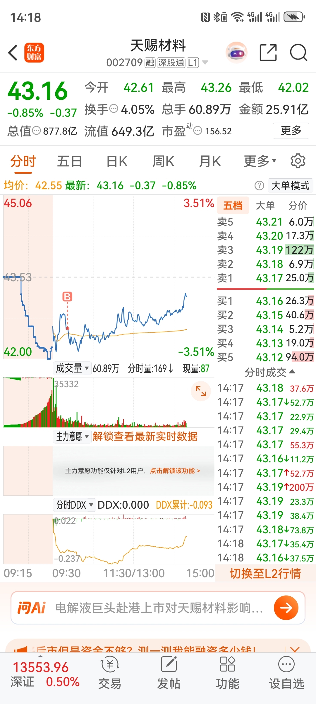 $天赐材料(SZ002709)$ 追高穷一生,低吸富三代,今日低吸天赐肥料,买入原因,前天涨停,说明有市场热度,结合天际股份以及板块热度,选择了分时图中处于低位的天赐材料,关注我,我每次操作之后都会第一时间发帖的哦。