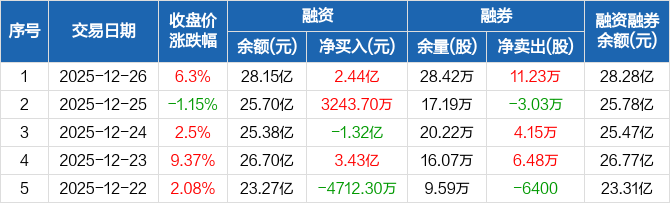 天赐材料:融资净买入2.44亿元,融资余额28.15亿元(12-26)