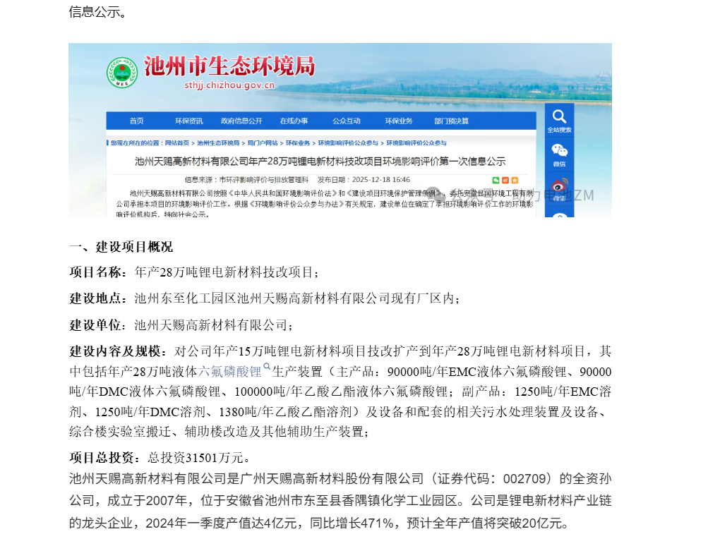 $天赐材料(SZ002709)$ 又有新项目了