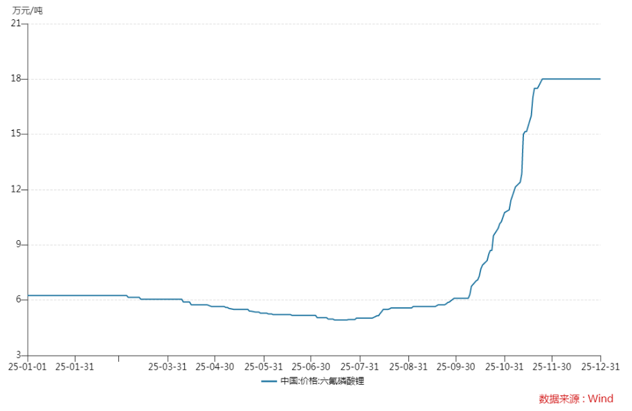 其中,六氟磷酸锂出现翻倍上涨行情,由9月末的6.1万元/吨升至年末的18万元/吨,四季度涨幅达到195%。