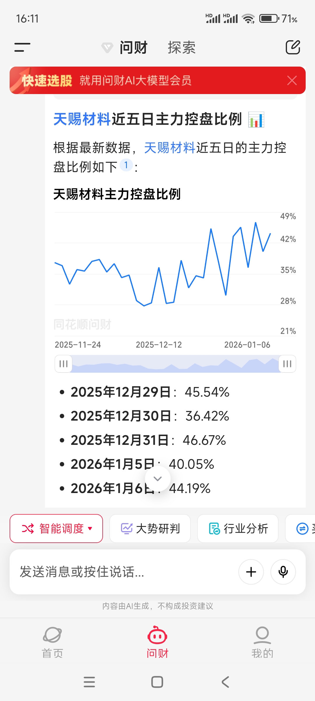 自11月24日以来,今天主力控盘比例为第四高为44.19%,12月23日为第三高45.24%。