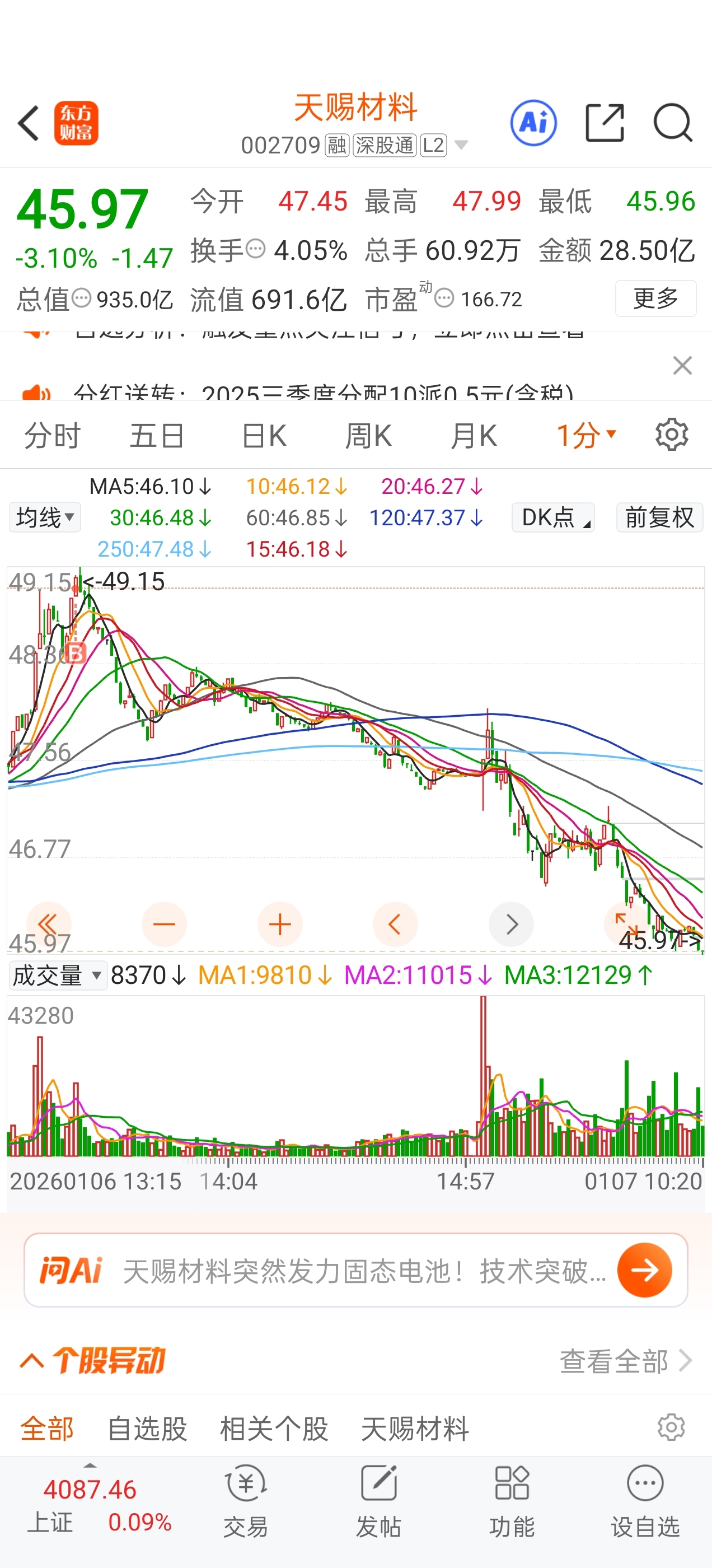$天赐材料(SZ002709)$ 我真是想打死我自己手贱买了