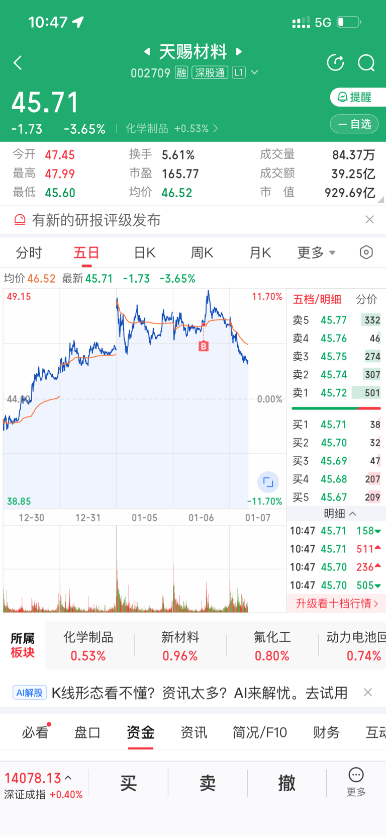 $天赐材料(SZ002709)$ 天啊!又买在了最高点,何时才能解套呀!