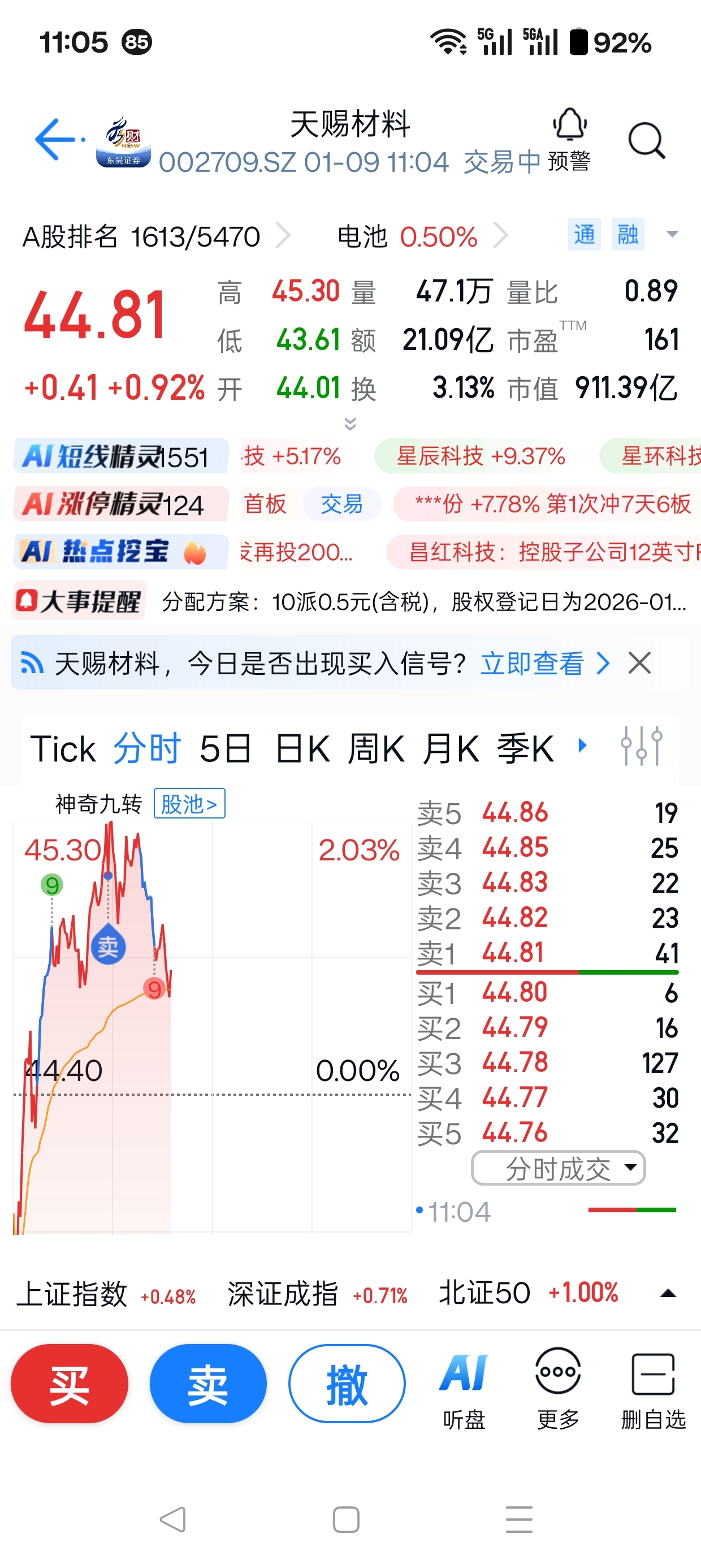 $天赐材料(SZ002709)$ 先卖出来看吧,暂且当做反弹看待。好的话46追进去都没问题。