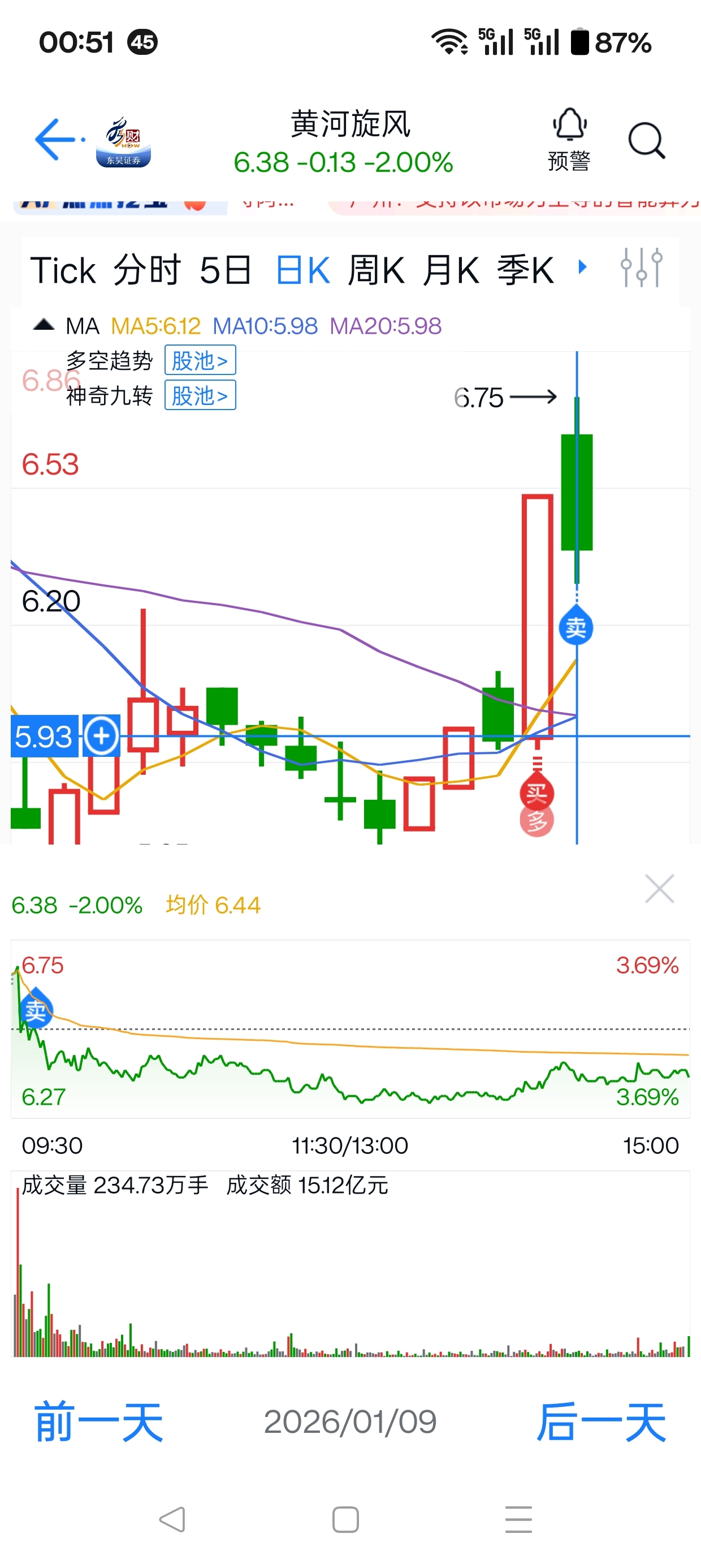 $天赐材料(SZ002709)$ 平均每天卖出一个涨停股,大盘牛市机会难得。这样的机会,不可持续,明天卖出涨停股后,停止操作。上周五卖出黄河旋风,是周四涨停股。明天买入天赐。