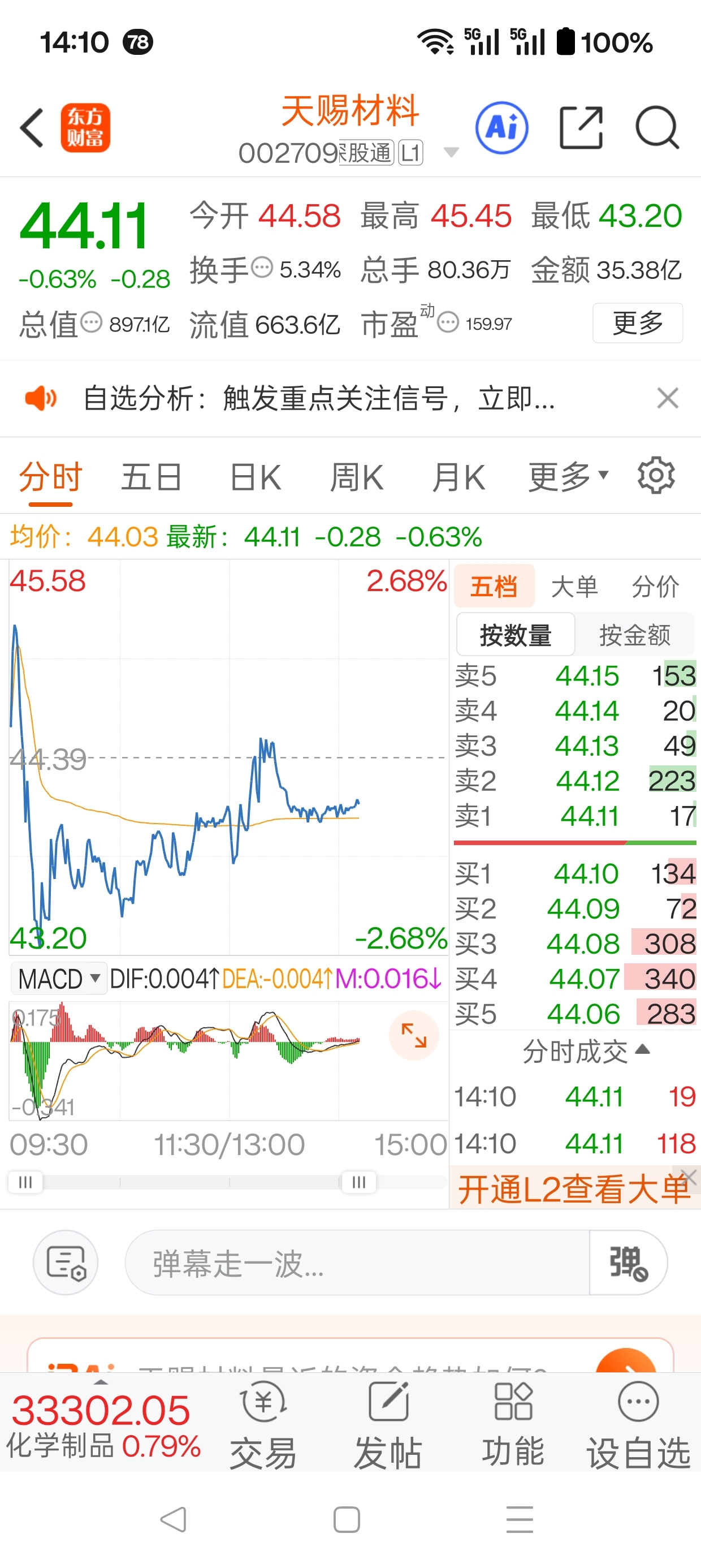天赐材料,不是不涨,是今天有利空,取消电池出口退税,而且大消费,商业航天遇到了利