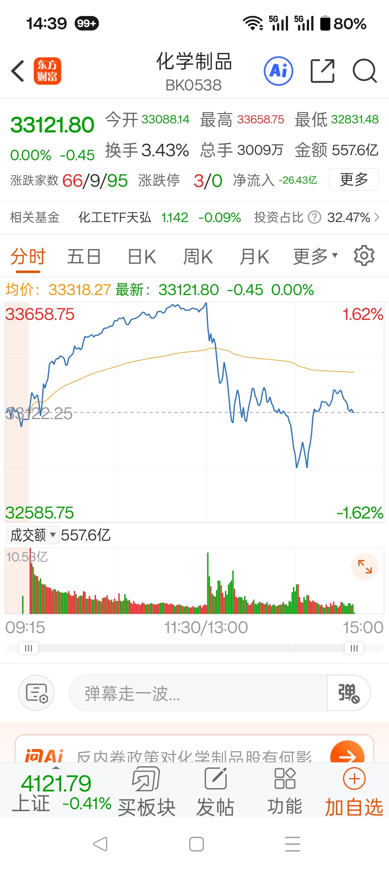 $天赐材料(SZ002709)$ 完全跟随板块运动下跌。