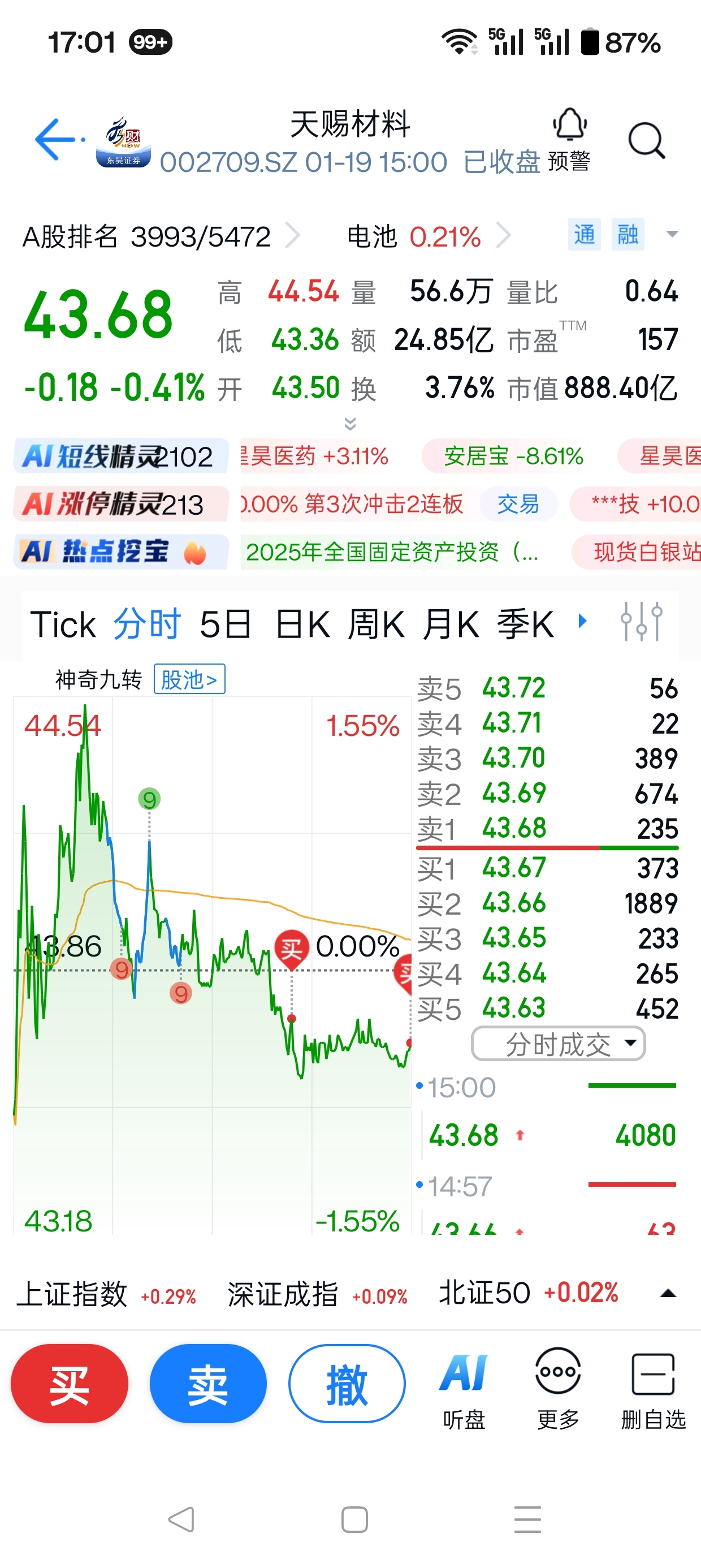 天赐材料,今天43.69建仓了。明天,你跟不跟?