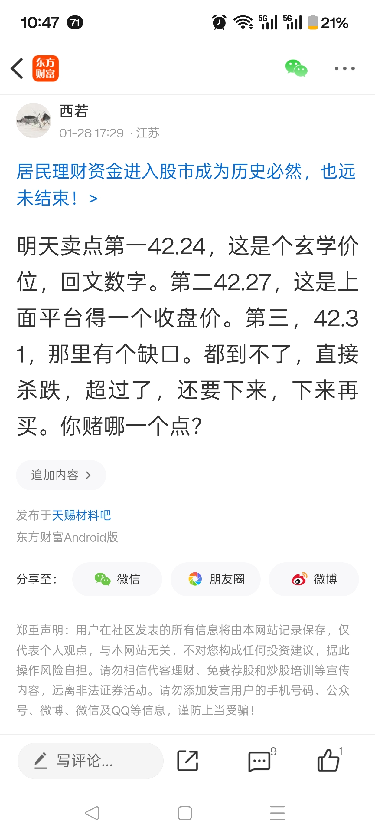 温馨提示: 1.根据《证券法》规定,禁止编造、传播虚假信息或者误导性信息,扰乱证券市场;2.用户在本社区发表的所有资料、言论等仅代表个人观点,与本网站立场无关,不对您构成任何投资建议。用户应基于自己的独立判断,自行决定证券投资并承担相应风险。《东方财富社区管理规定》