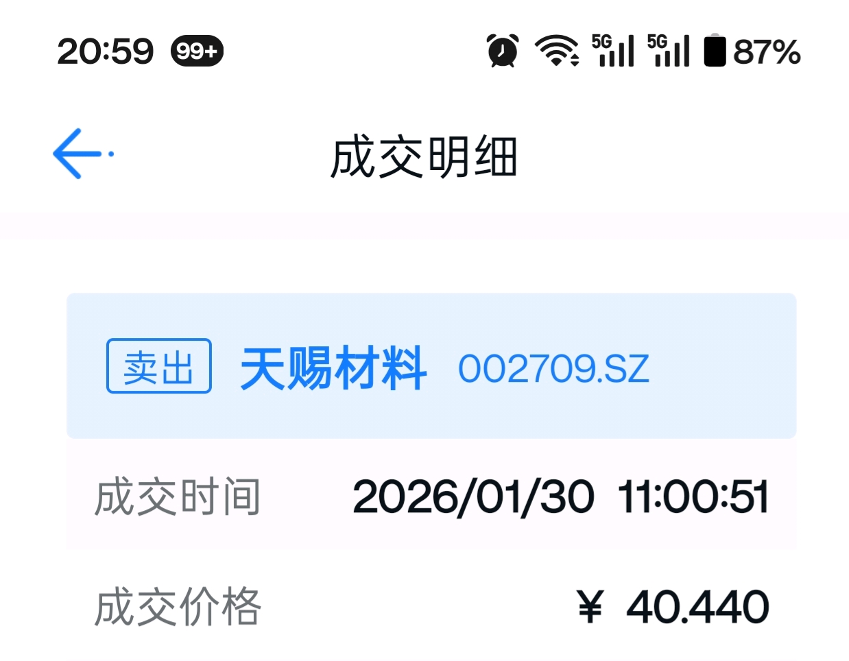 $天赐材料(SZ002709)$ 明天,可能不能再看天赐材料给出买卖点的预测了我已经换股了。昨天卖出了天赐,因为是割肉走人的,没有提示。明天去看这几只股,航天发展,三维通信,浙文互联,胜利股份,重庆钢铁,金科股份,省广集团,我是准备卖出,不是推荐买入。建议,逢低买入铜的股票。天赐,观察,卖出今天买的。
