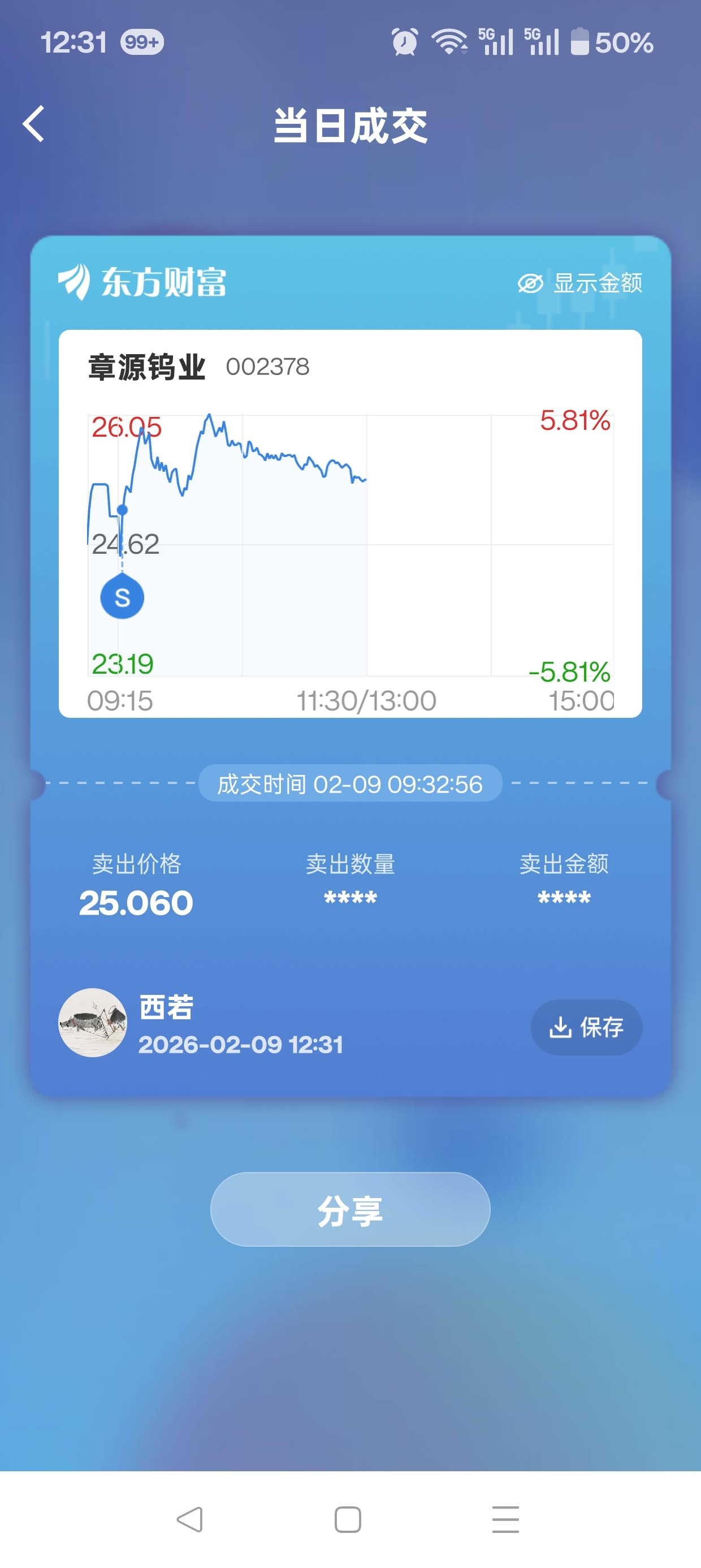 $天赐材料(SZ002709)$ 每天要坚持卖出一只张婷股,今天卖出早了,为啥?要赶去买银子。章源钨业,周五涨停。尾市打开。