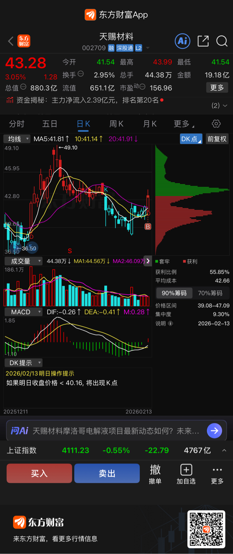$天赐材料(SZ002709)$ 参与进来 给节后布局