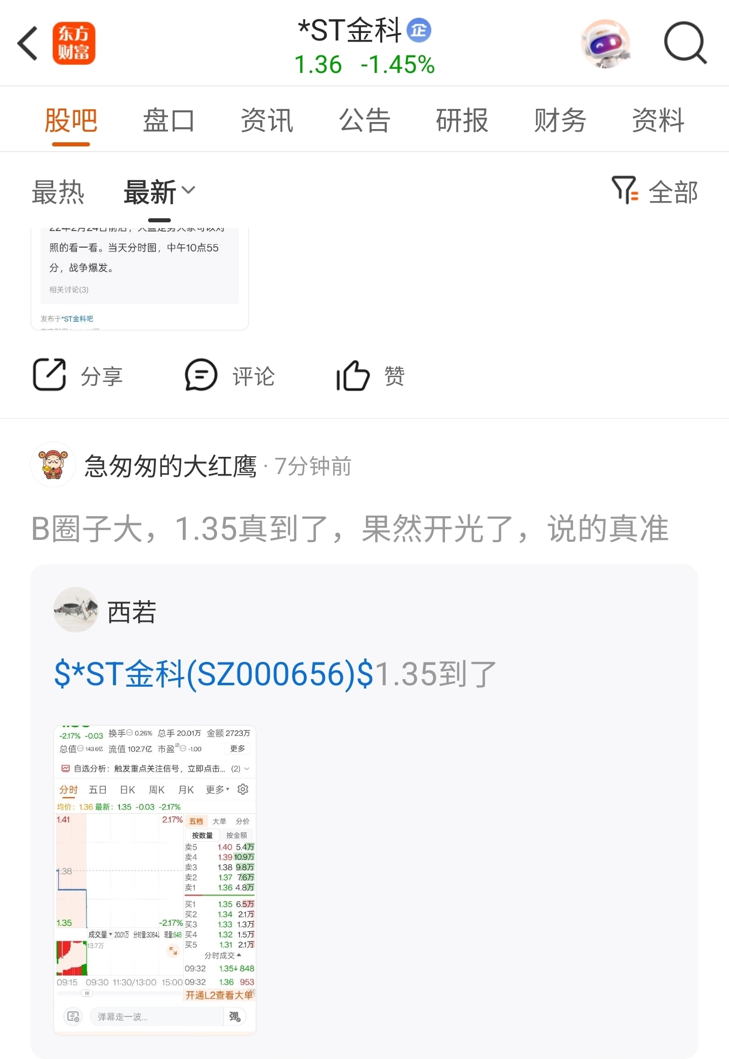 温馨提示: 1.根据《证券法》规定,禁止编造、传播虚假信息或者误导性信息,扰乱证券市场;2.用户在本社区发表的所有资料、言论等仅代表个人观点,与本网站立场无关,不对您构成任何投资建议。用户应基于自己的独立判断,自行决定证券投资并承担相应风险。《东方财富社区管理规定》