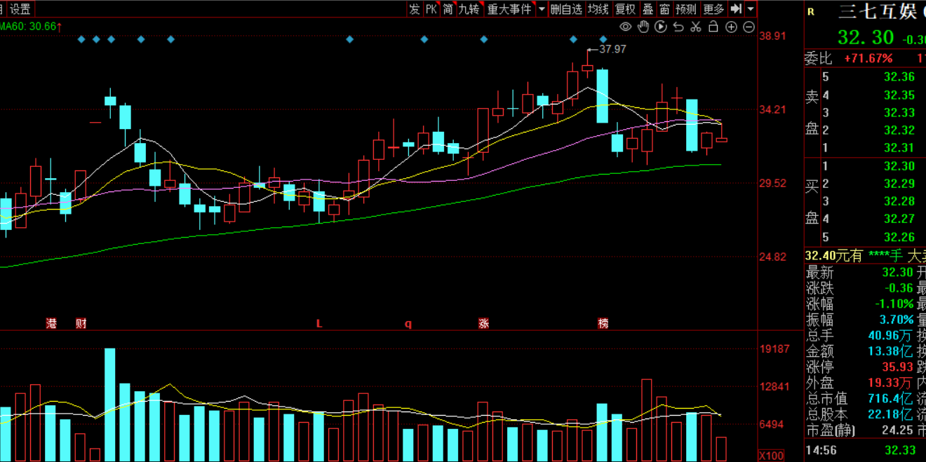 1,早盘分析的巨星股份、拓维信息因为位置高,今天出现中阴线,后市要跟随大盘回踩才有机会再走强。而经过回调的$三七互娱(SZ002555)$则稍好一些,下午才翻绿,微跌1%收盘,明天收阳可期。
