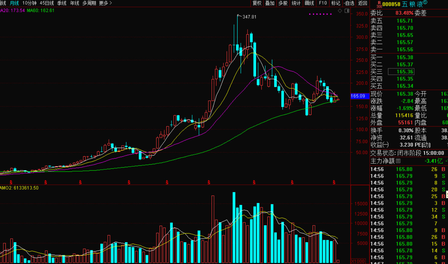 老陈之前说过,长线资金在等五粮液跌破160元就考虑存进去做长线,然而五粮液似乎没法再跌破160了,毕竟今年的业绩又增长了,近年调整的最低点也在上年出现了,上年10月的133元。底部大资金不断对五粮液建仓,以及大盘熊市预期落空,老陈认为150元的五粮液已经机会很少了,所以今天长线资金已经7成仓位建仓五粮液,成本165.5元。目标3-5年内上到500元。下一波大行情顶部出货。